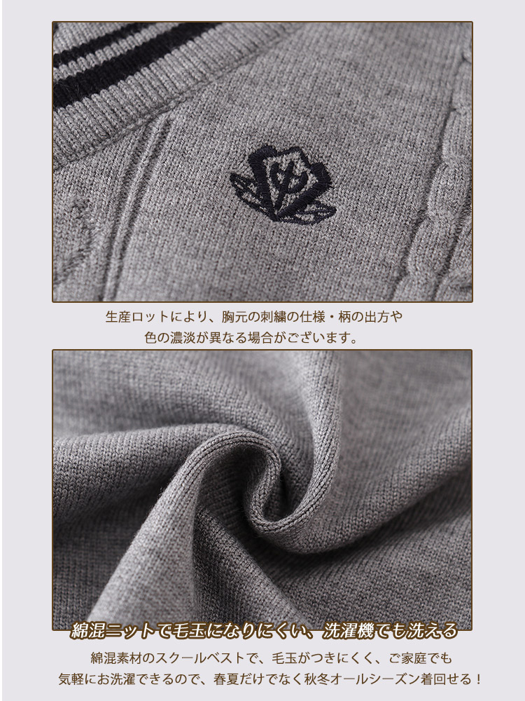 綿混素材のスクールベストで、毛玉がつきにくく、