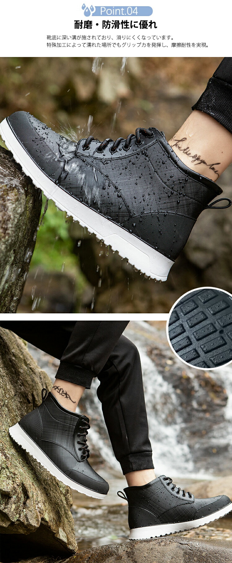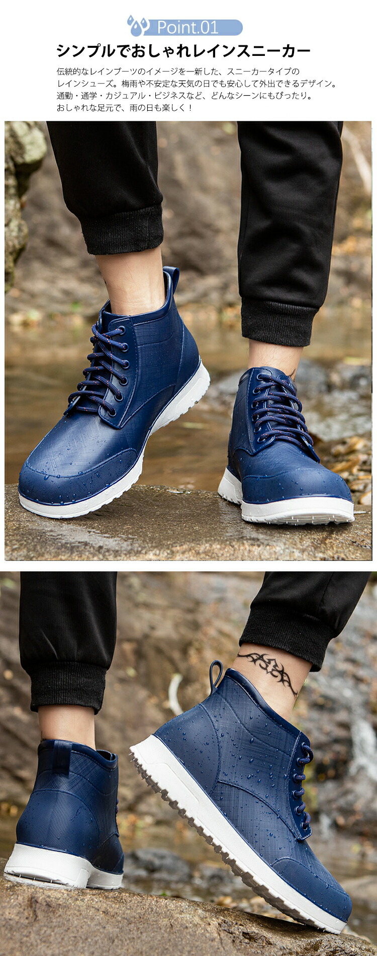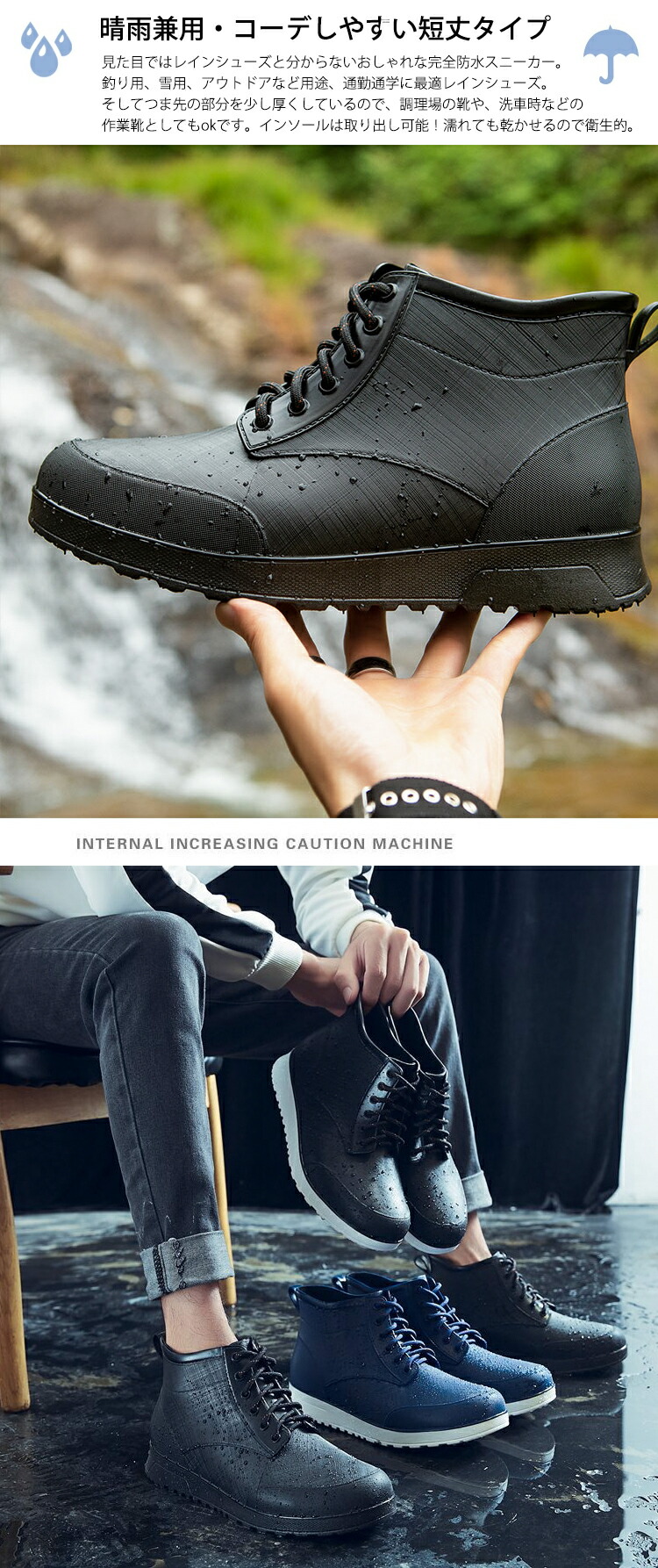 レインシューズ メンズ 防水 レインスニーカー レインブーツ おしゃれ 完全防水 滑りにくい 大きいサイズ ハイカットスニーカー ショートブーツ 幅広 軽量 防滑 履きやすい 晴雨兼用 ブ 歩きやすい