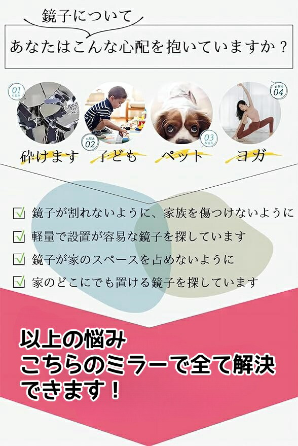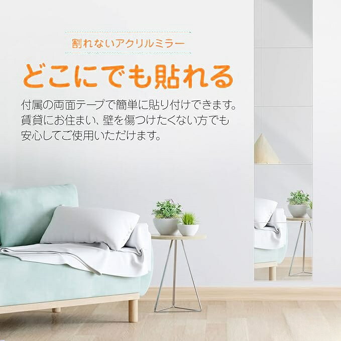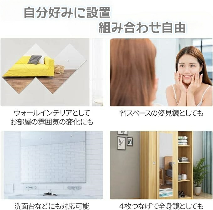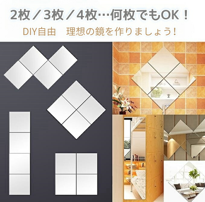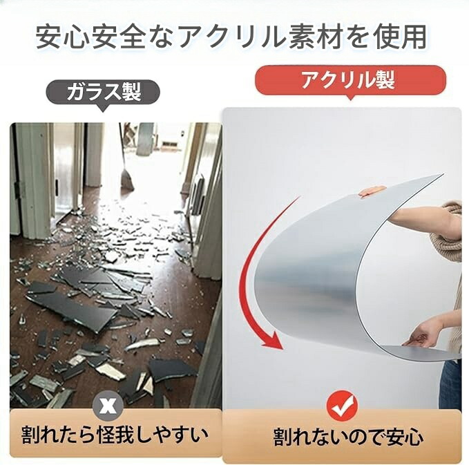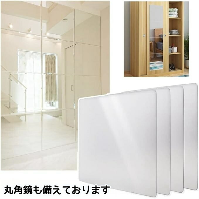 どこでも貼れる割れない鏡 鏡シート 全 直角 丸角 20x20cm 30x30cm 40x40cm