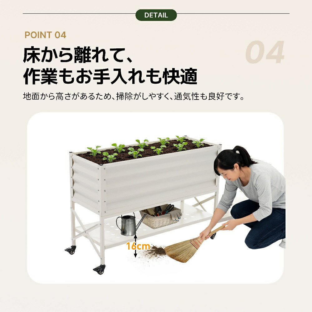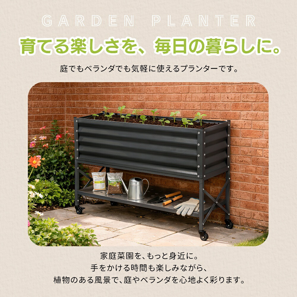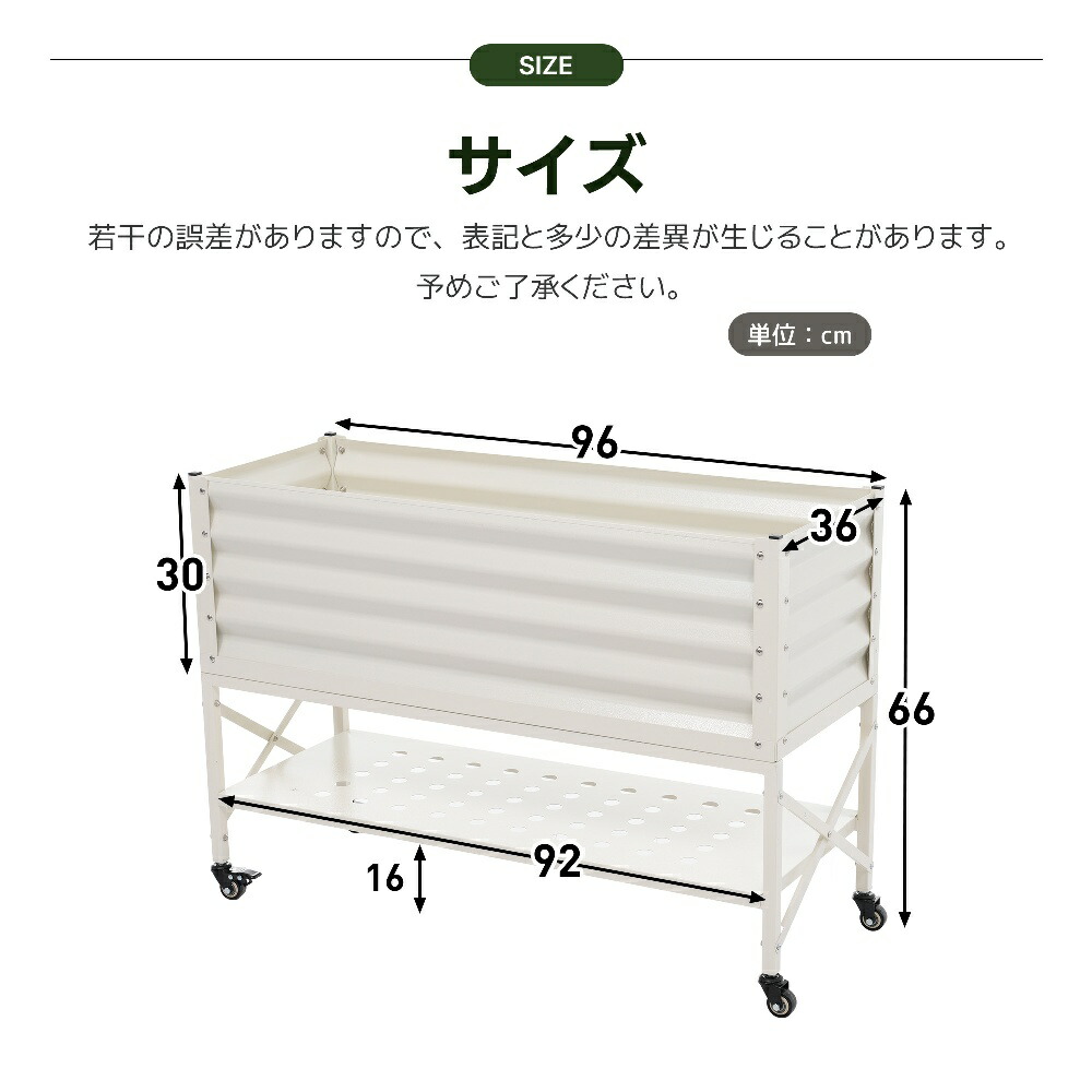キャスター付き レイズドベッド ガーデ ホワイト ブラック