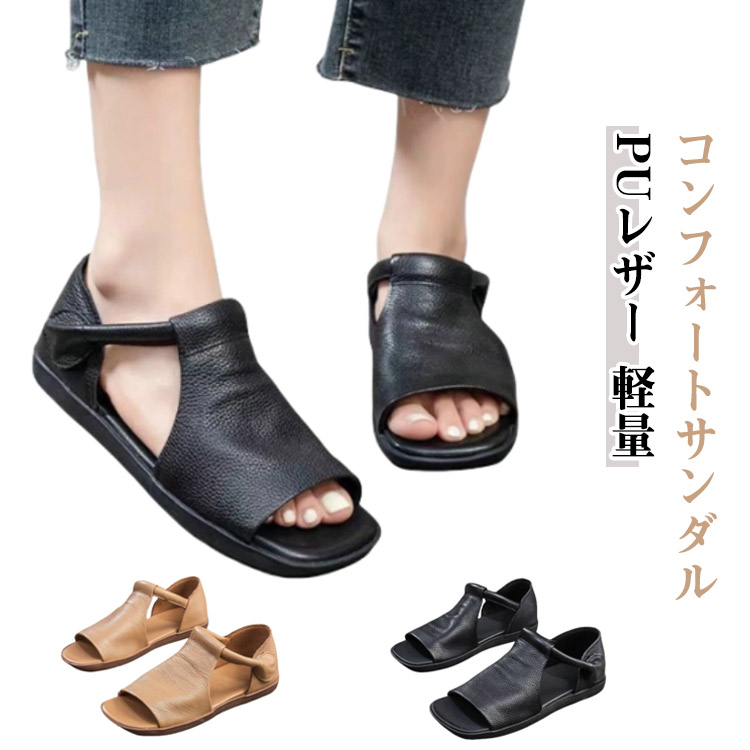 サンダル コンフォートサンダル レトロ レディース靴 サンダル コンフォートサンダル 豊富な品揃え ブラック ベージュ 35(22.5cm) 36(23.0cm) 37(23.5cm) 38(24.0cm) 39(24.5cm) 40(25.0cm)