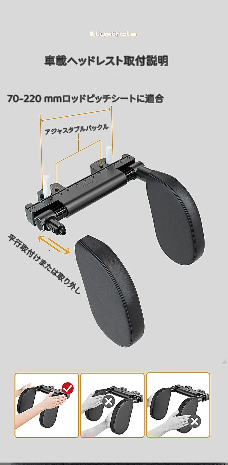 強力推薦☆車載用スリープヘッドレスト自 ブラック グレー イエロー ブラウン カーキ色 レッド