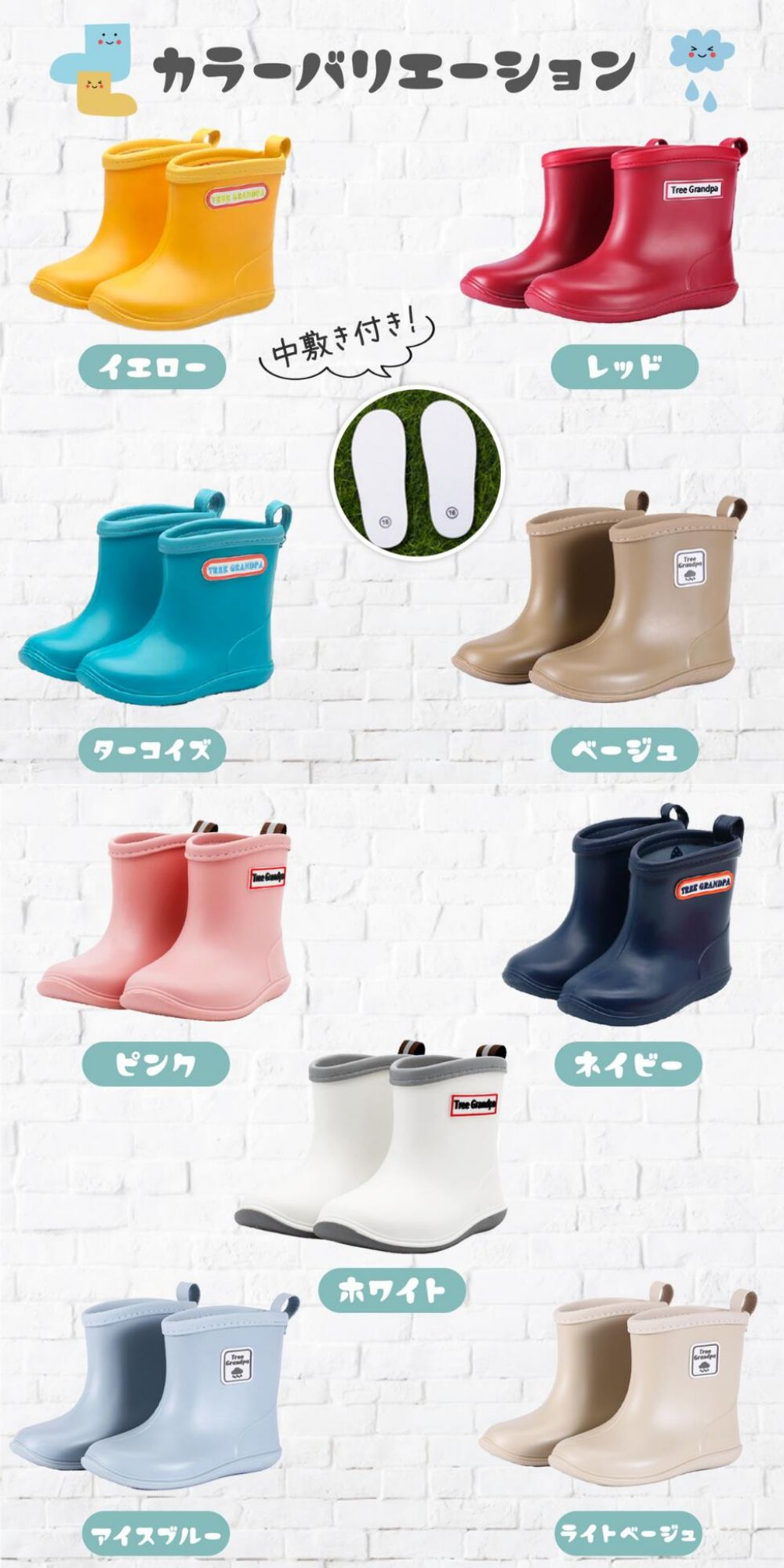 長靴 キッズ 子供 子ども レインブー キッズ ベビー マタニティ 新作 イエロー ターコイズ ベージュ ピンク ホワイト アイスブルー ライトベージュ ネイビー レッド 14cm(13cm) 15cm(14cm) 16cm(15cm) 17cm(16cm) 18cm(17cm) 19cm(18cm) 20cm(19cm)