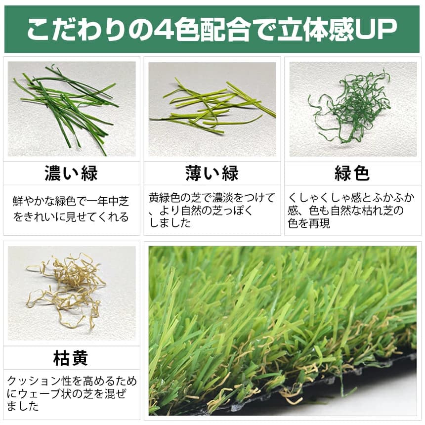 デヒド 色落ちにくい 抜けにくい 水はけ U字ピンつき 復元性 立体感 芝庭 屋上緑化 バルコニー 整地