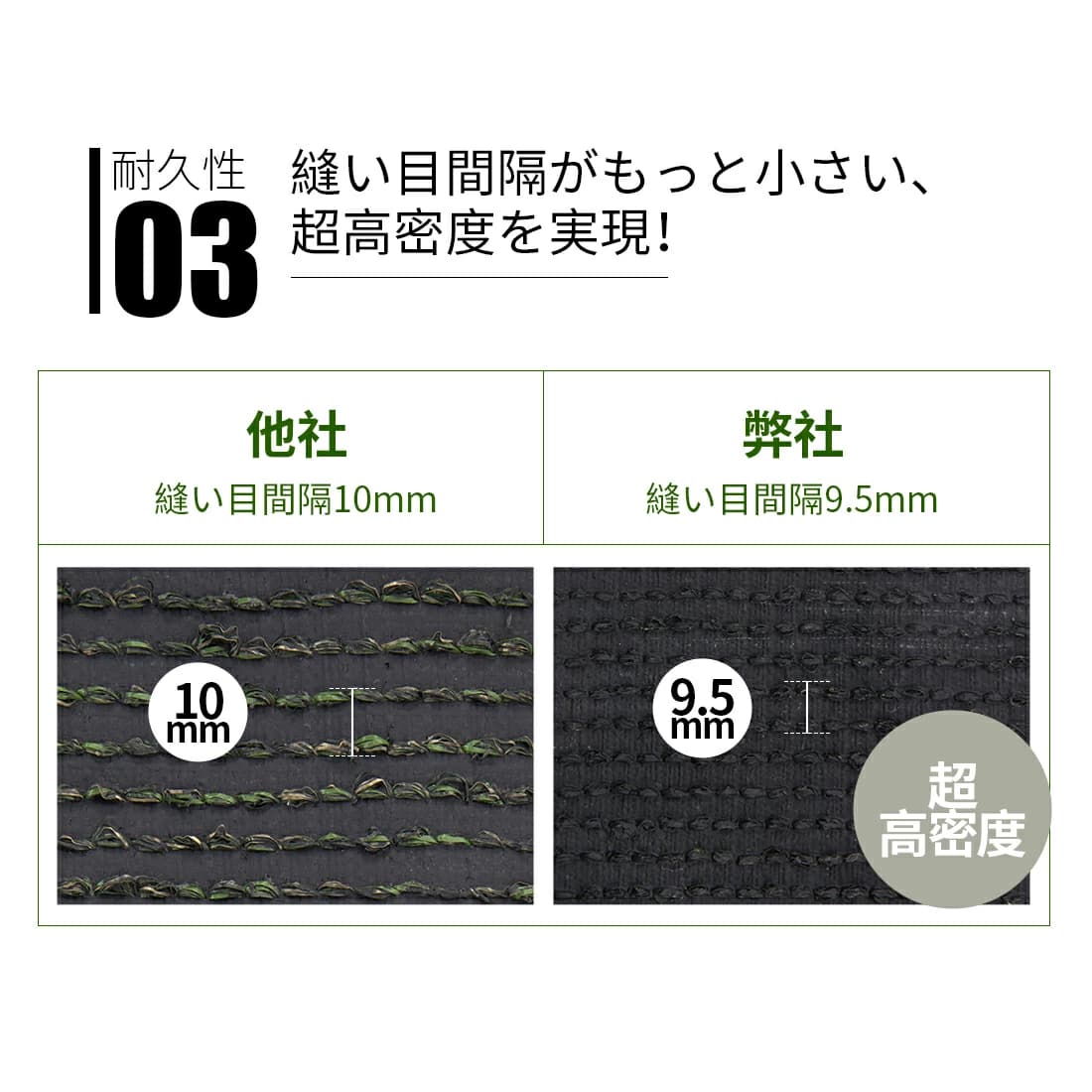 密度:目の細かさ(葉の密度):33万束/m2