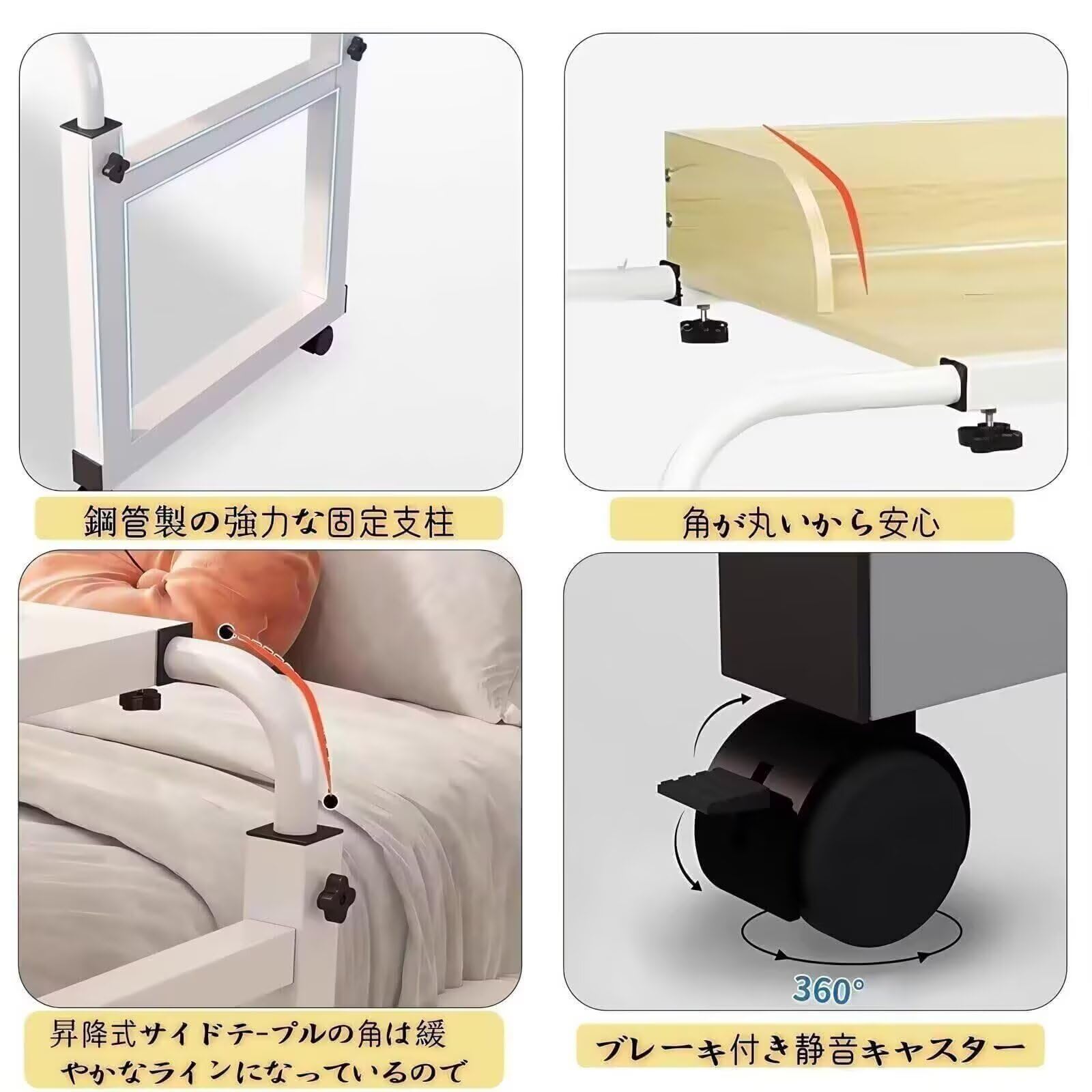 ベッドテーブル キャスター付き オーバ