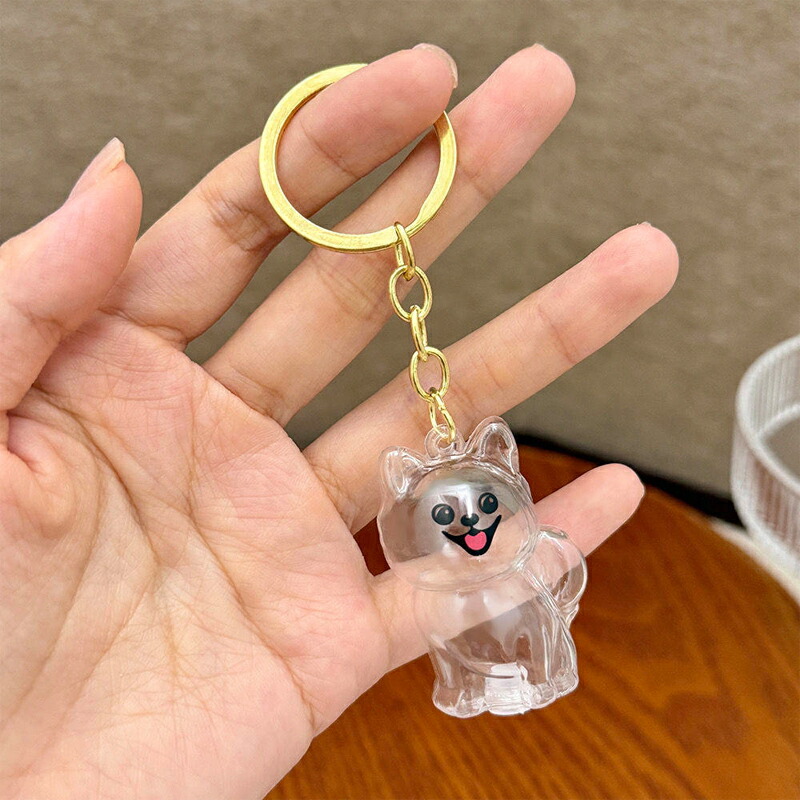 ・愛犬の毛を大切に保存できる透明カプセルタイプのキーホルダー。