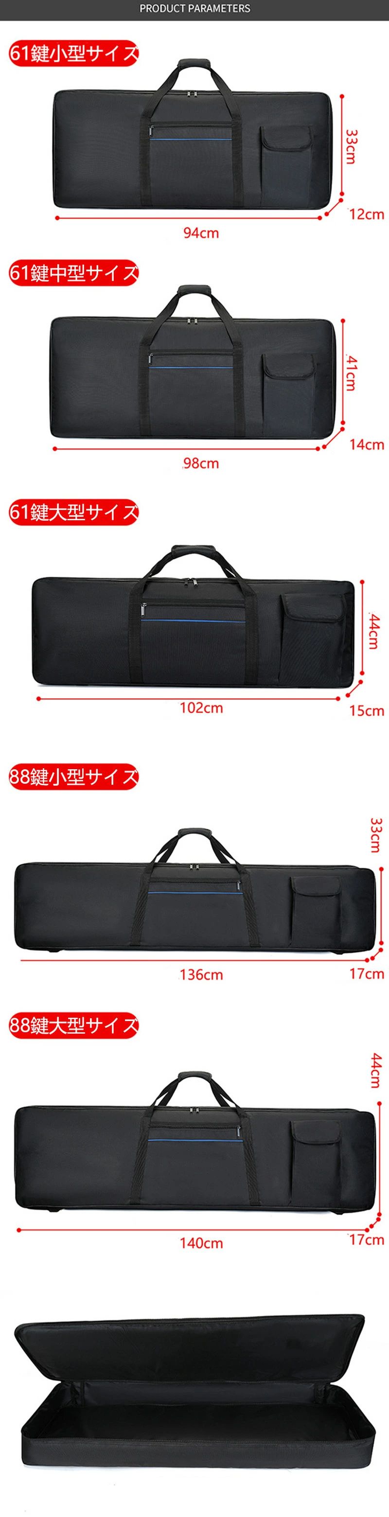 キーボードケース 88鍵 61鍵 キー 61鍵小型サイズ94*33*12 61鍵中型サイズ98*41*14 61鍵大型サイズ102*44*15 88鍵小型サイズ136*33*17 88鍵大型サイズ139*44*17