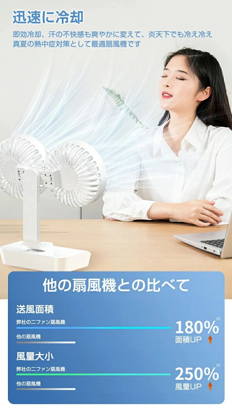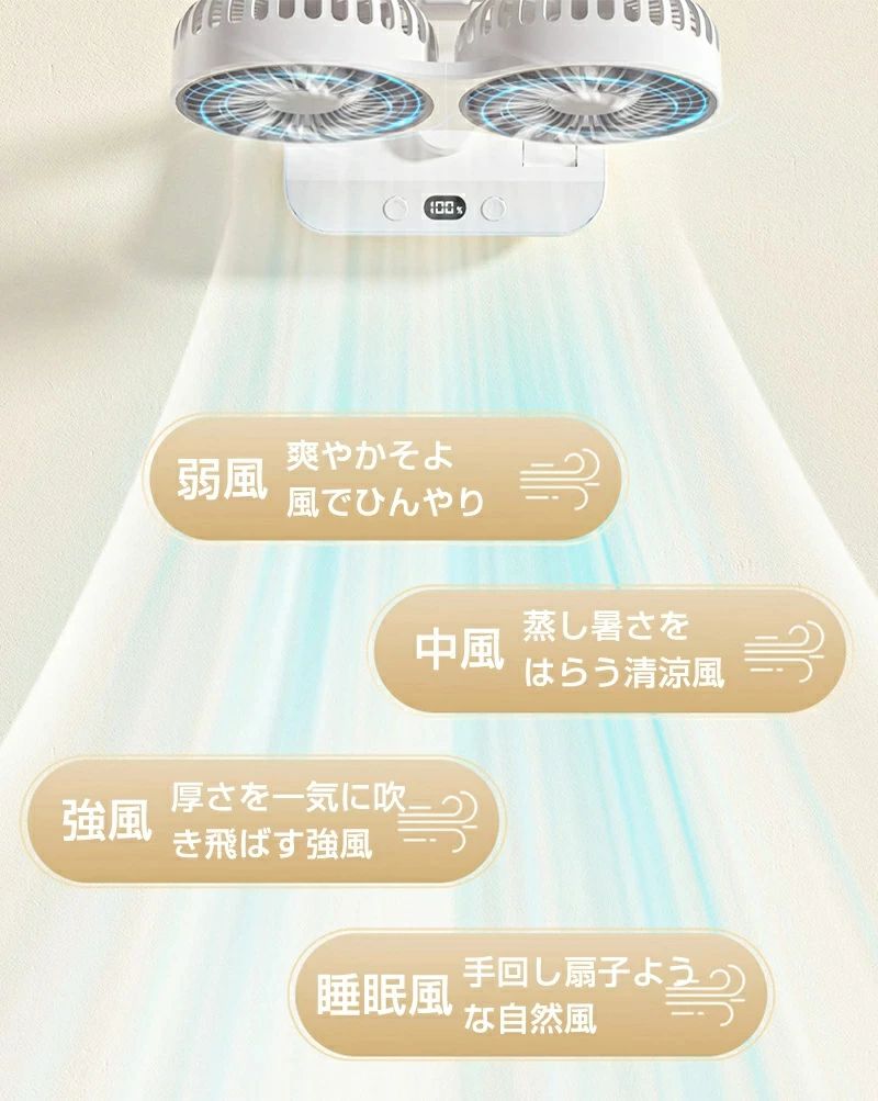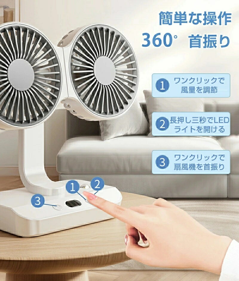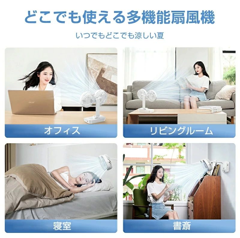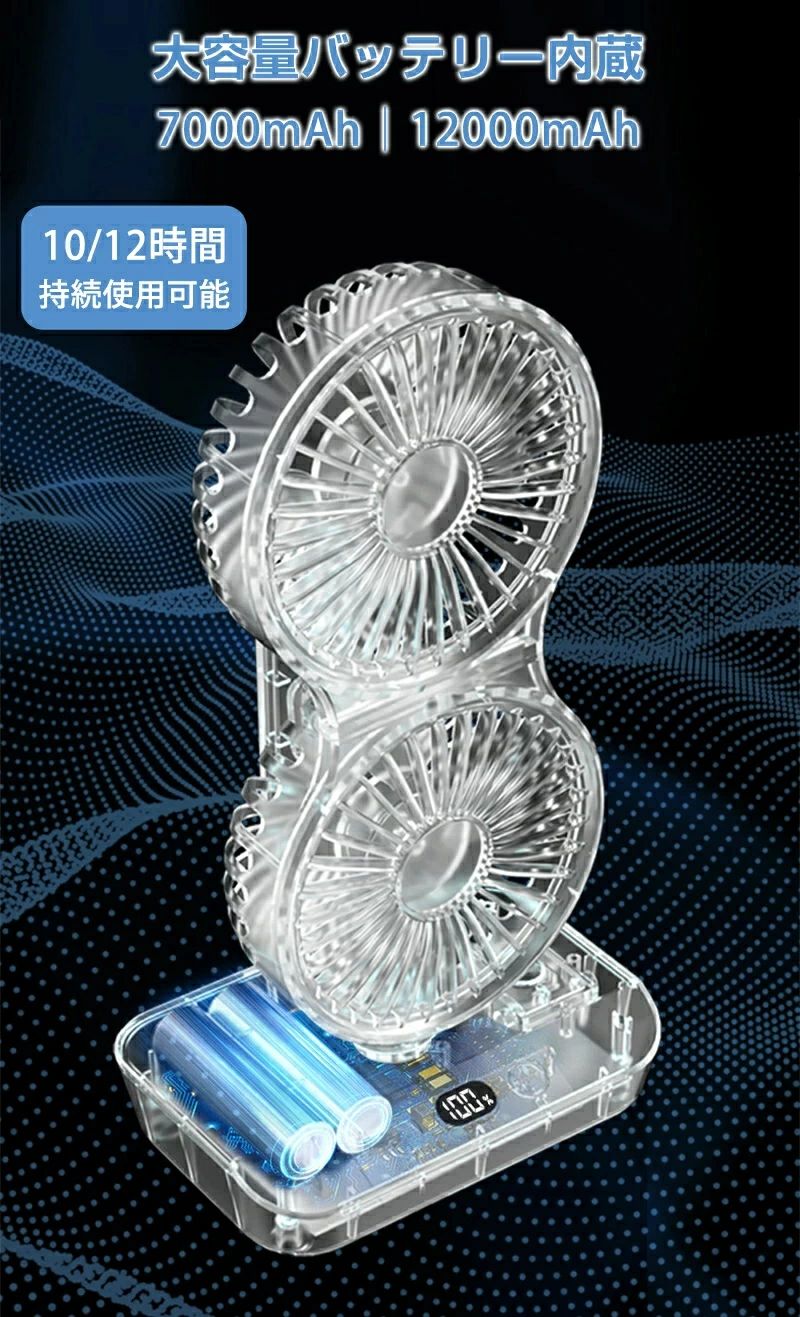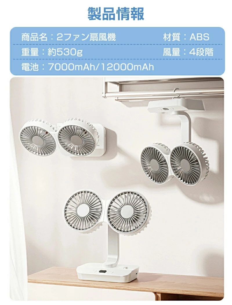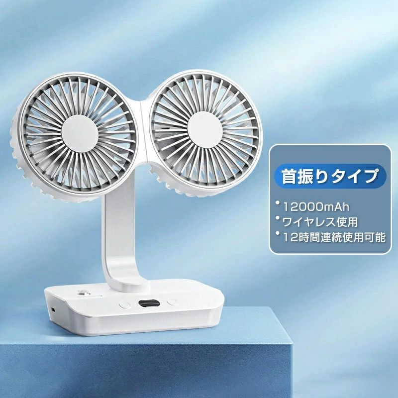 サーキュレーター 2連 車載扇風機 壁 4000mAh 7000mAh 12000mAh