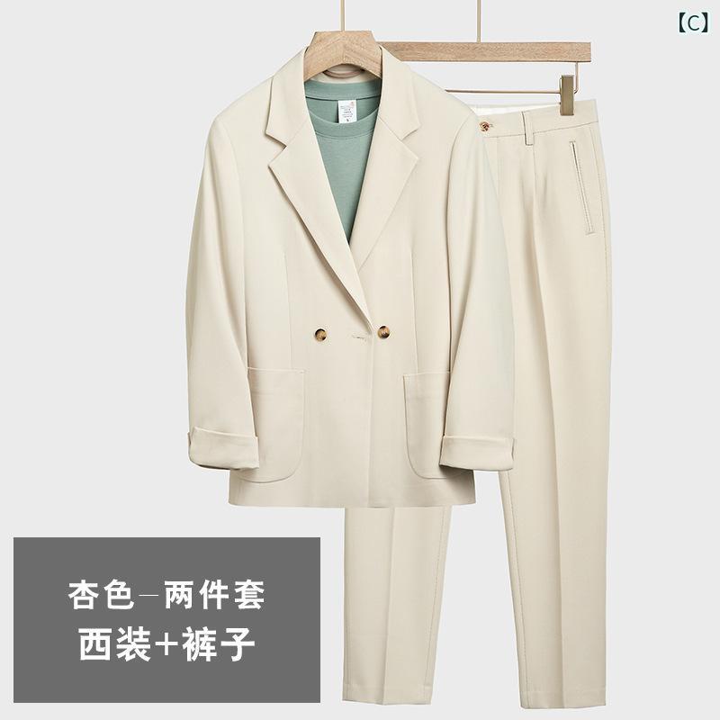 メンズ スーツセット カジュアル ビジ スーツ セットアップ スーツ 人気 A:黒セット B:グレーセット C:杏セット D:緑セット E:黒上着 F:グレー上着 G:杏上着 H:緑上着 M L XL XXL 3XL