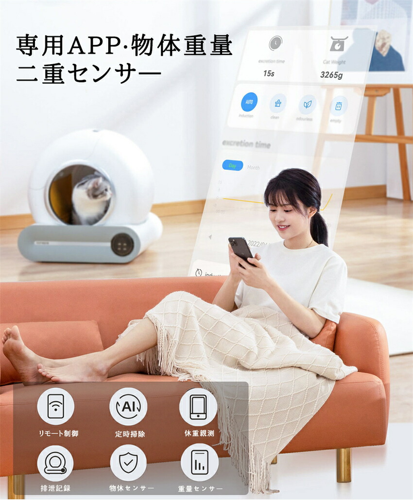 自動ネコトイレ 猫 トイレ 猫の足挟みゼロ アプリ制御可能 遠隔操作 感知センサー付き 全自動猫トイレ 65L超大空間 大容量ゴミコンテナ 日本語説明書付き 自動清掃 自動脱臭 静音 多頭飼 定期清掃