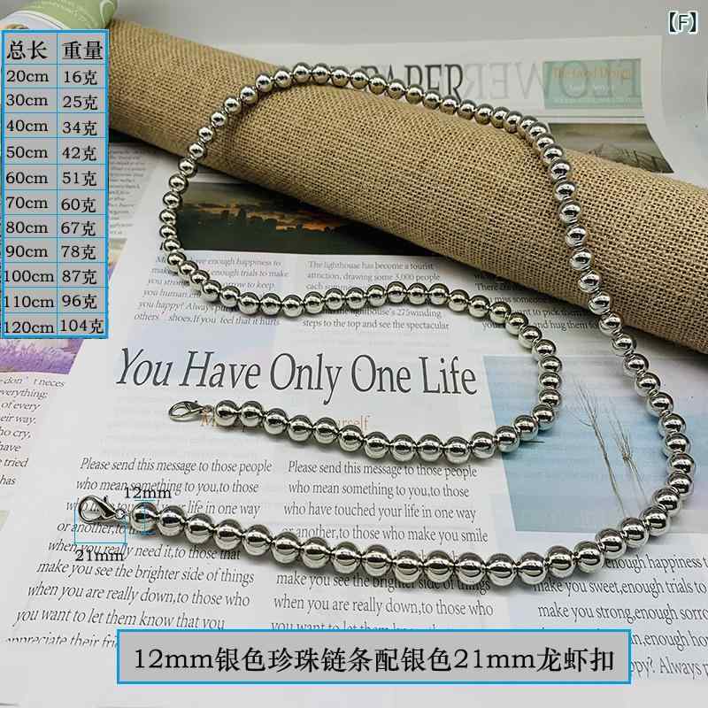 バッグストラップ パールチェーン ショ バッグ 小物 ブランド雑貨 早い者勝ち A:8mm黒珠21mm銃色エビカ B:10mm黒珠21mm銃色エビ C:12mm黒珠21mm銃色エビ D:8mm銀珠21mm銀エビカン E:10mm銀珠21mm銀エビカ F:12mm銀珠21mm銀エビカ 全長20cm 全長30cm 全長40cm 全長50cm 全長60cm 全長70cm 全長80cm 全長90cm 全長100cm 全長110cm 全長120cm