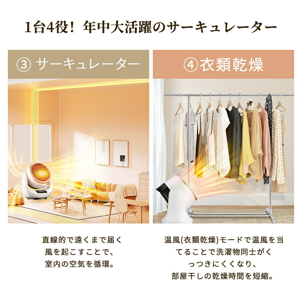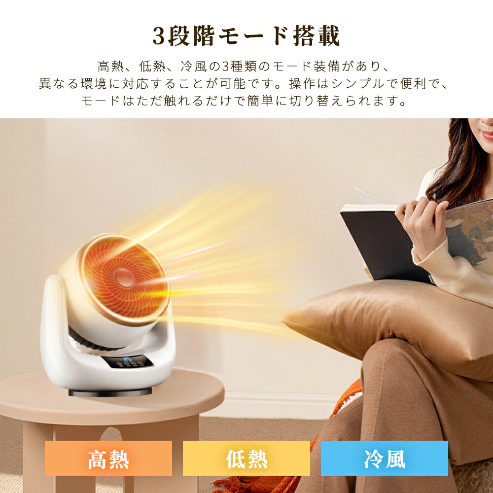 サーキュレーター 扇風機 冷暖兼用 衣類乾燥機 小型 首振り セラミックヒーター 温風 暖風機 卓上 電気ヒーター 暖房器具 2秒速暖 過熱保護 3段階切替 タイマー付き リモコン付き 電気 温冷風扇