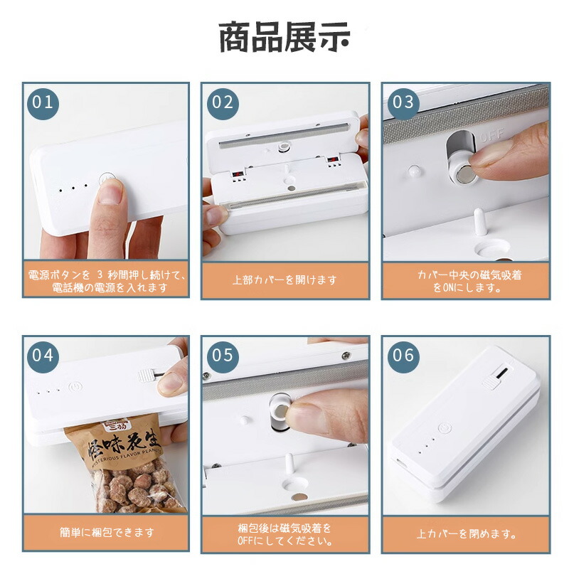 ミニフードシーラ USB充電可能 ミニ ピンク ホワイト グリーン