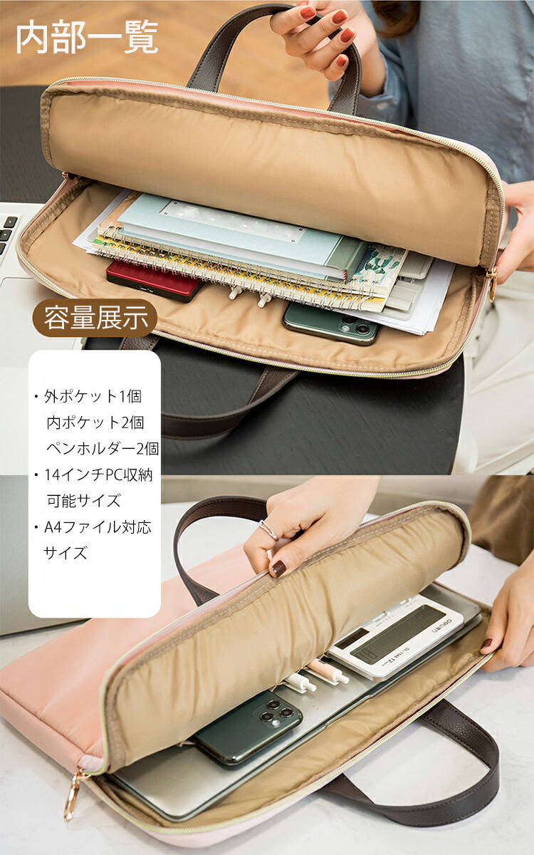 パソコンバッグ14インチレディース用女 ベージュ ピンク ブラック ネイビー