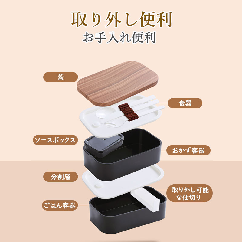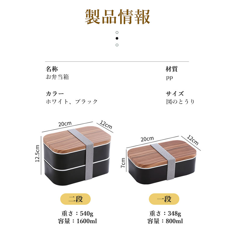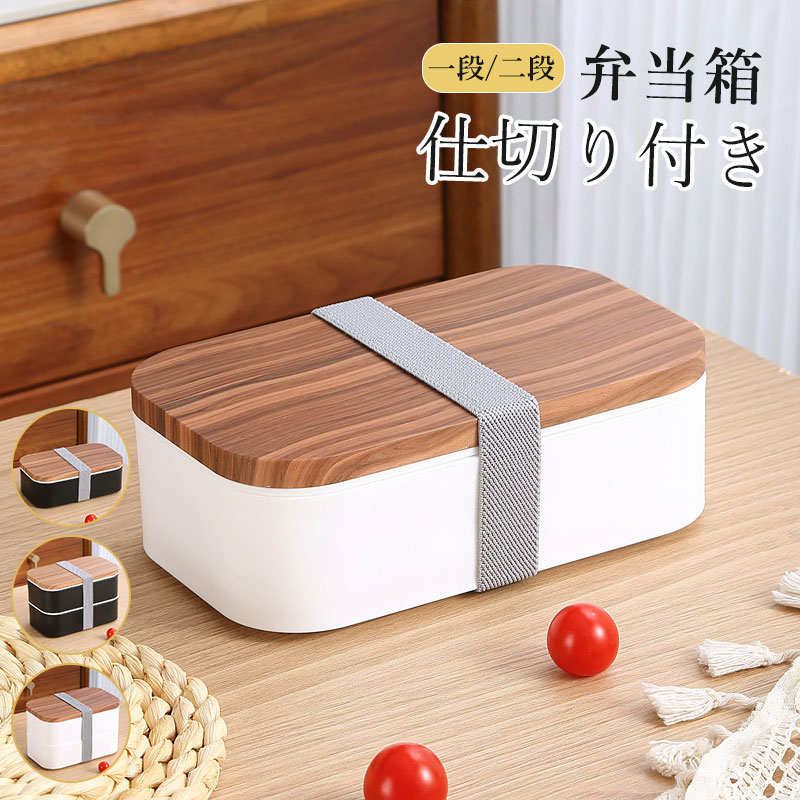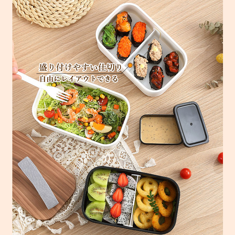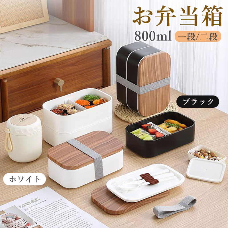 弁当箱 ランチボックス 仕切り付き 1 弁当箱 水筒 弁当箱 人気 ホワイト ブラック 800ml(1段) 1600ml(2段)