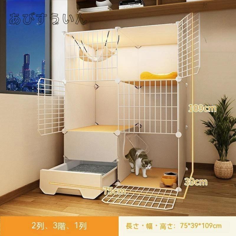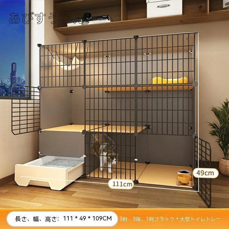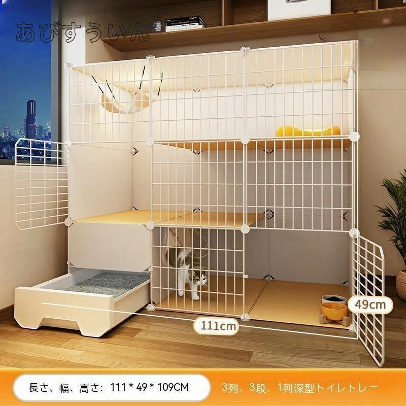 3段 大型 猫 ケージ 付き ゲージ ペットサークル コンパクト ミニ 猫小屋トイレ一体ケージ ペット 室内用