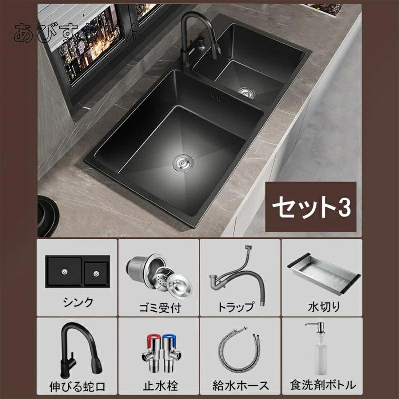 シンク ステンレス 二槽シンク 流し台 セット1(蛇口なし) セット2(標準蛇口) セット3(伸びる蛇口) 68×38cm【在庫切れ!!】 72×40cm 75×40cm 78×43cm 81×43cm 82×45cm 了解致しました。