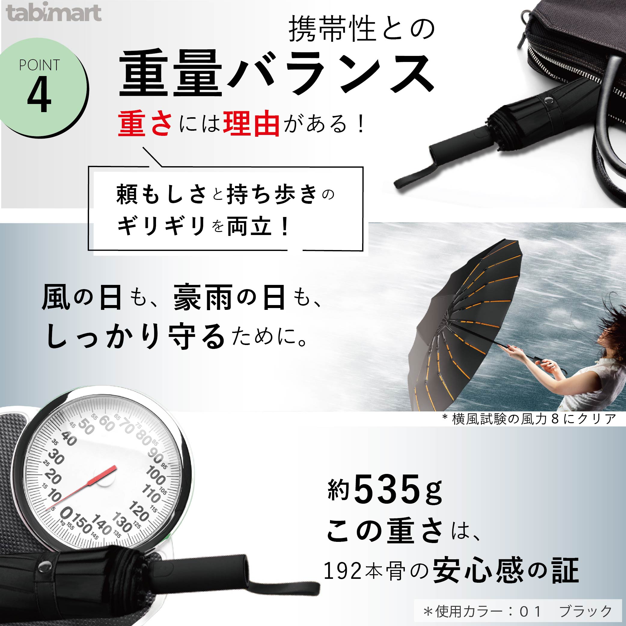 1. 超耐風フレームで突風も安心