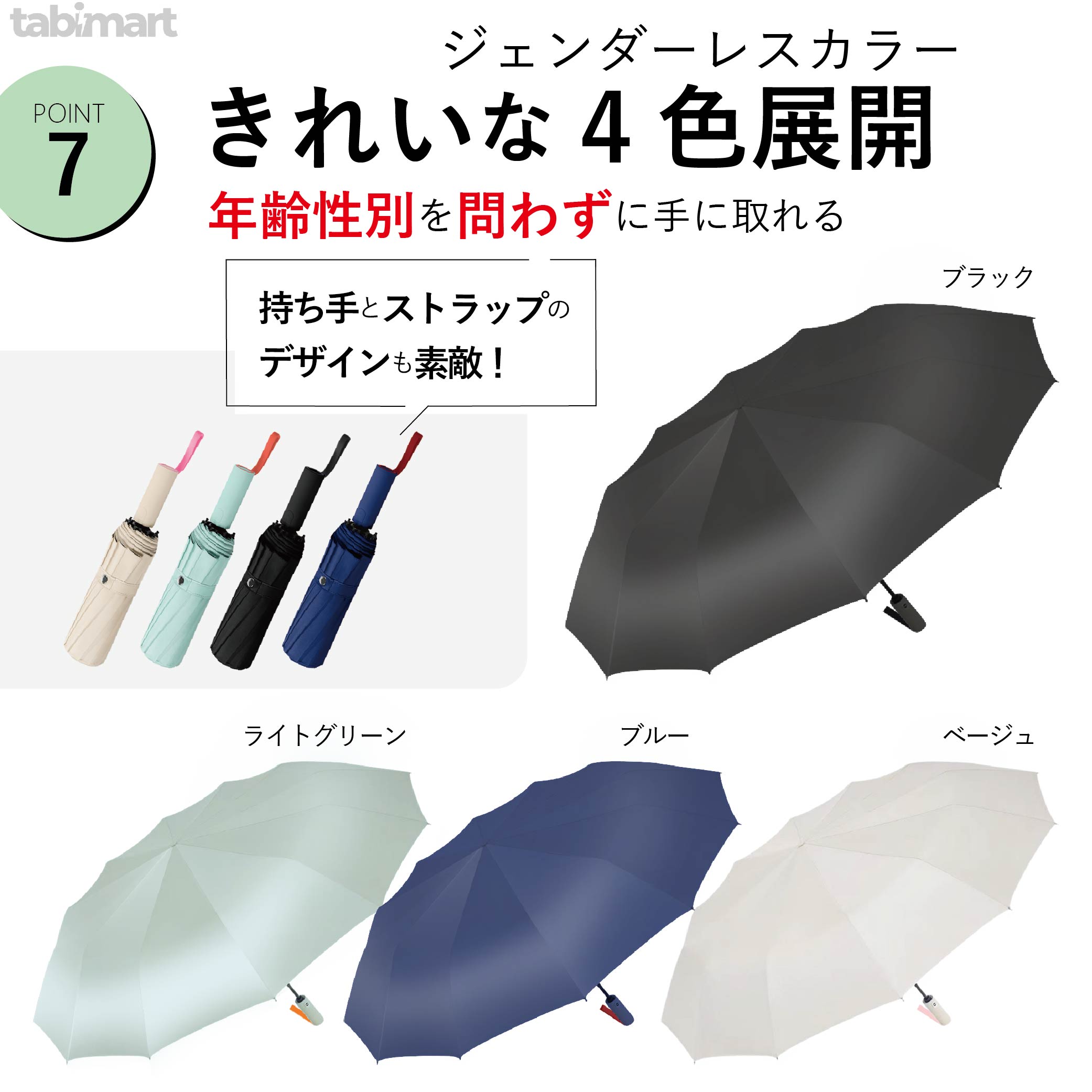 裏面にはブラックフィルムをラミネートし、紫外線遮蔽率99%・UPF50+を取得。真夏の強い日差しから肌を守り、体感温度を約12℃下げる遮熱効果も備えています。これ一本で日傘と雨傘の役割を兼ねるため、荷物を減らしたい外回りやレジャーに最適。色褪せやシミを気にせず使えるので、女性の美白対策はもちろん、アウトドア好きの男性にも高評価です。