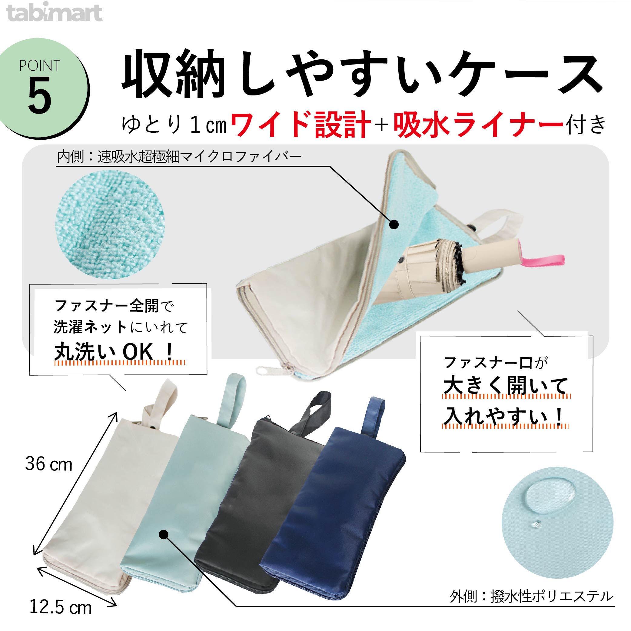 14. 傘カバーは丸洗い30秒、速乾で毎日清潔