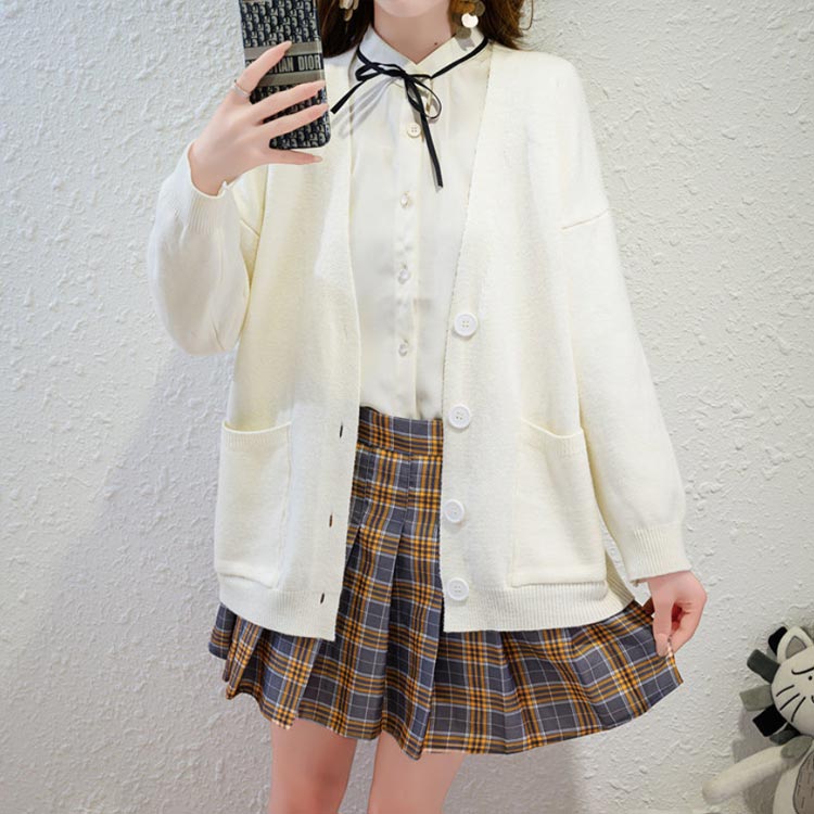 スクールカーディガン Vネック 入学 トップス カーディガン ボレロ 新作 ベージュ ホワイト ブラック ピンク ブルー S M L XL 2XL