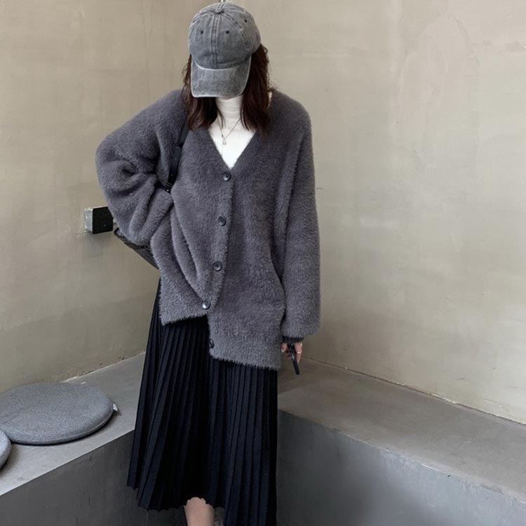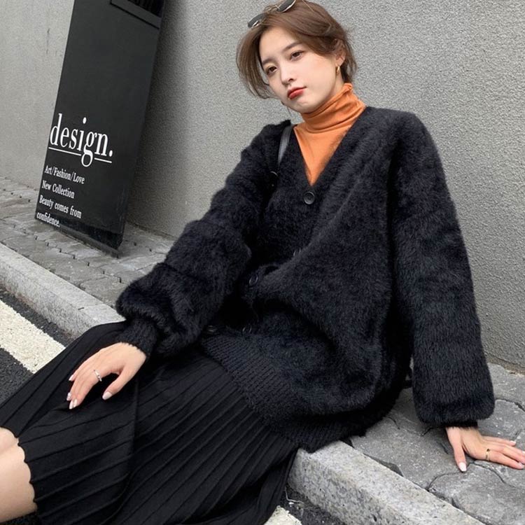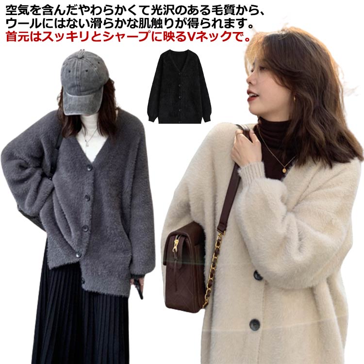 シャギーニットカーディガン カーデ シ トップス カーディガン ボレロ 続々入荷中 ブラック ベージュ グレー