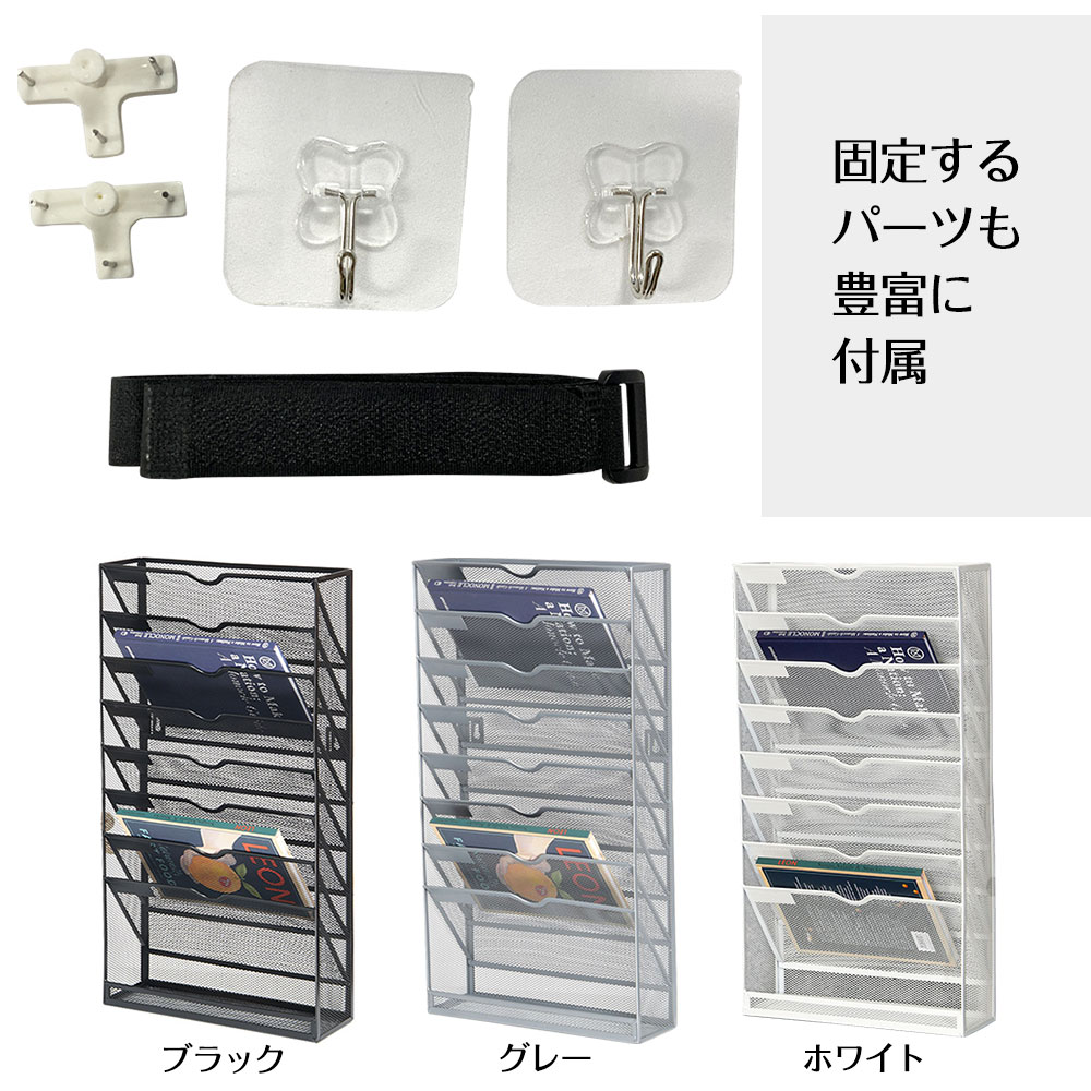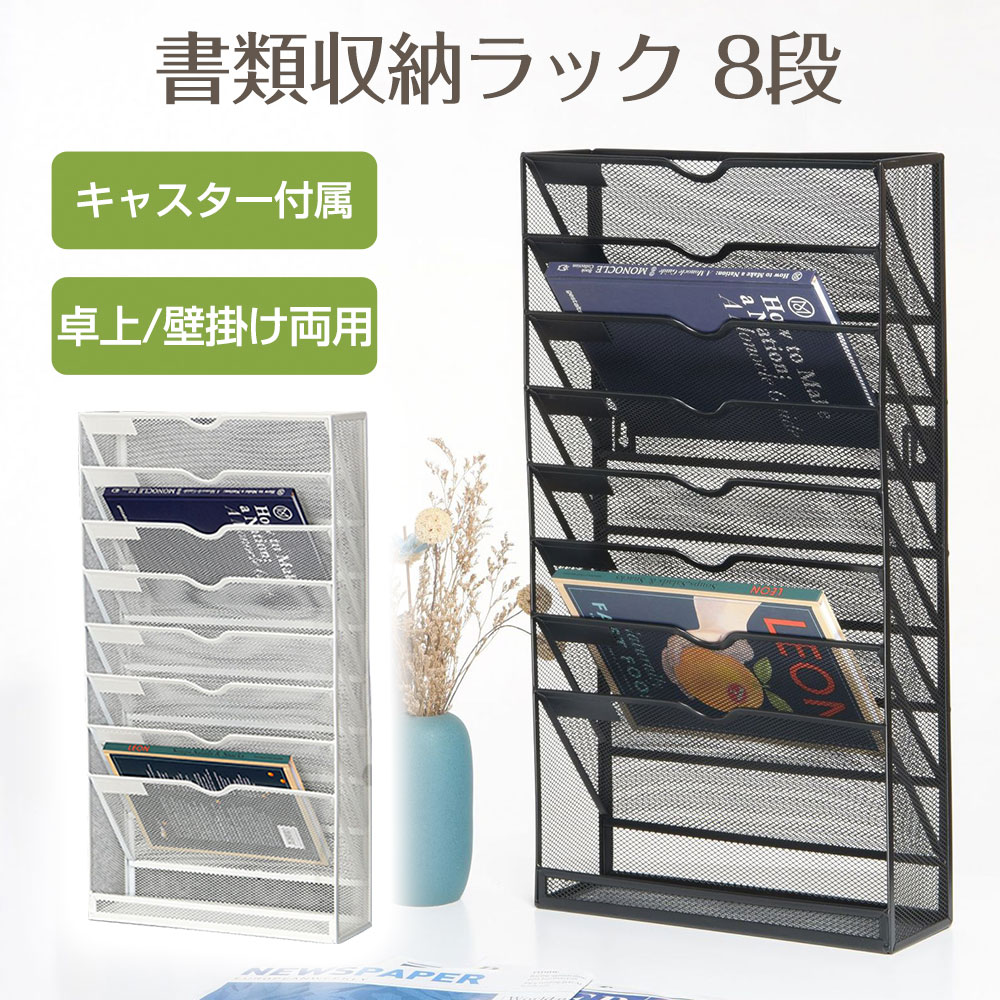 8段 書類収納ラック キャスター付き ブラック ホワイト グレー