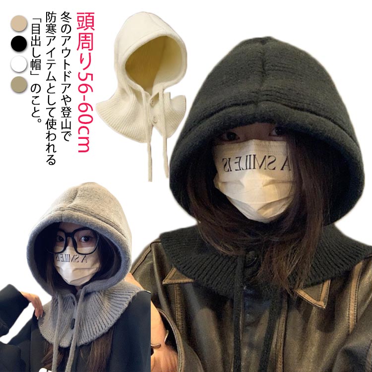 ニット帽 バラクラバ レディース 秋冬 帽子 レディース帽子 ニット帽 通販 グレー ブラック オフホワイト ベージュ