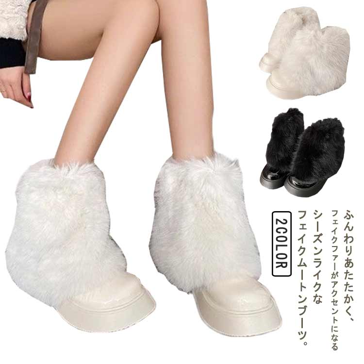 暖かい レディース 厚底 ムートンブー 靴 新作 ホワイト ブラック 22.5cm 23cm 23.5cm 24cm 24.5cm 25cm