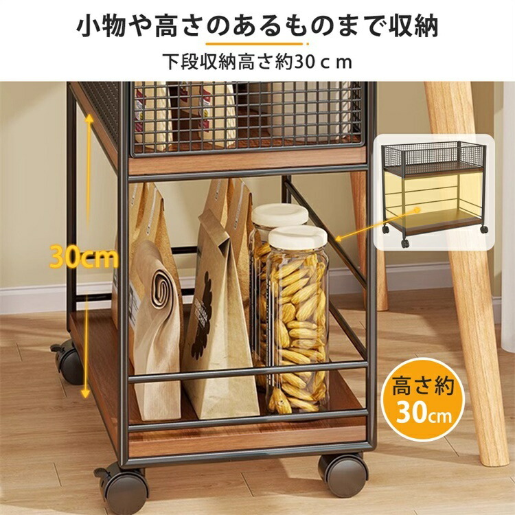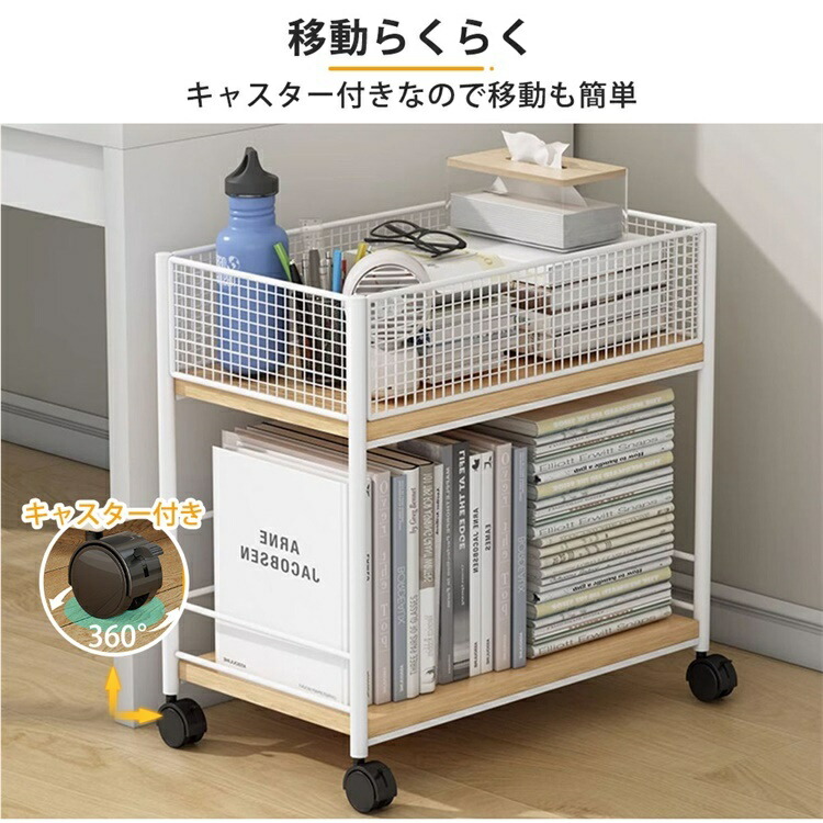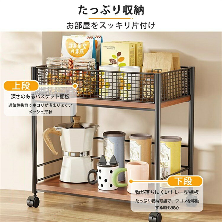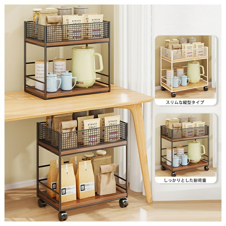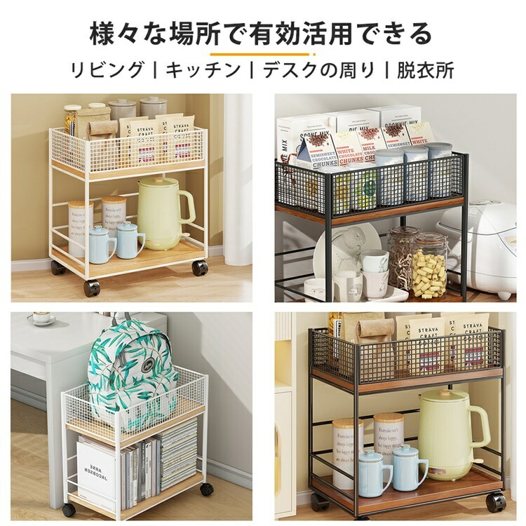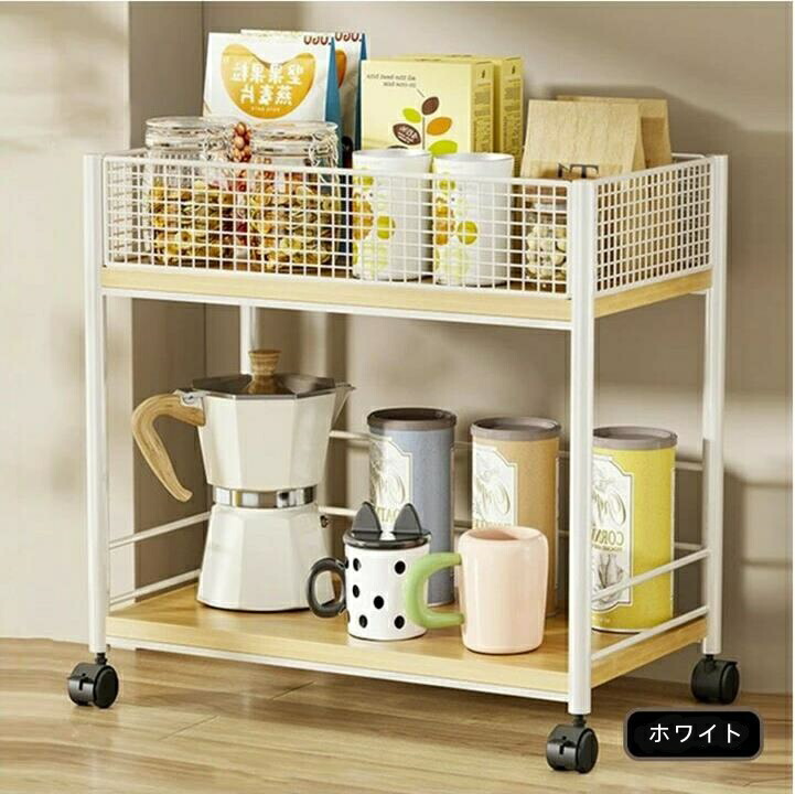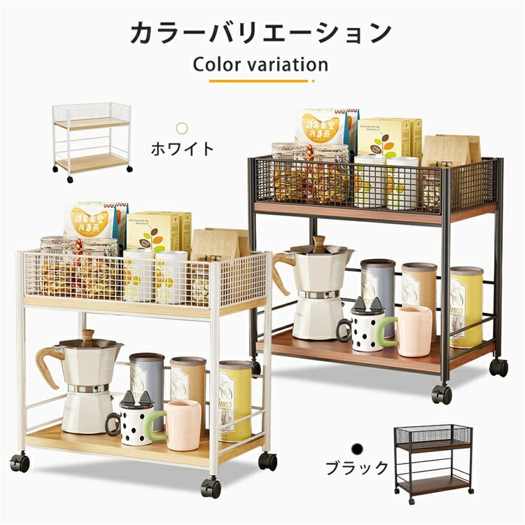 キッチンワゴン 2段 キャスター付き ホワイト ブラック