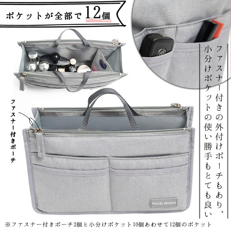 バッグインバッグ 小さめ リュック ポ バッグ バッグ用アクセサリー バッグオーガナイザー バッグインバッグ 通販 グレー ピンク ライトブルー ブラック ネイビー