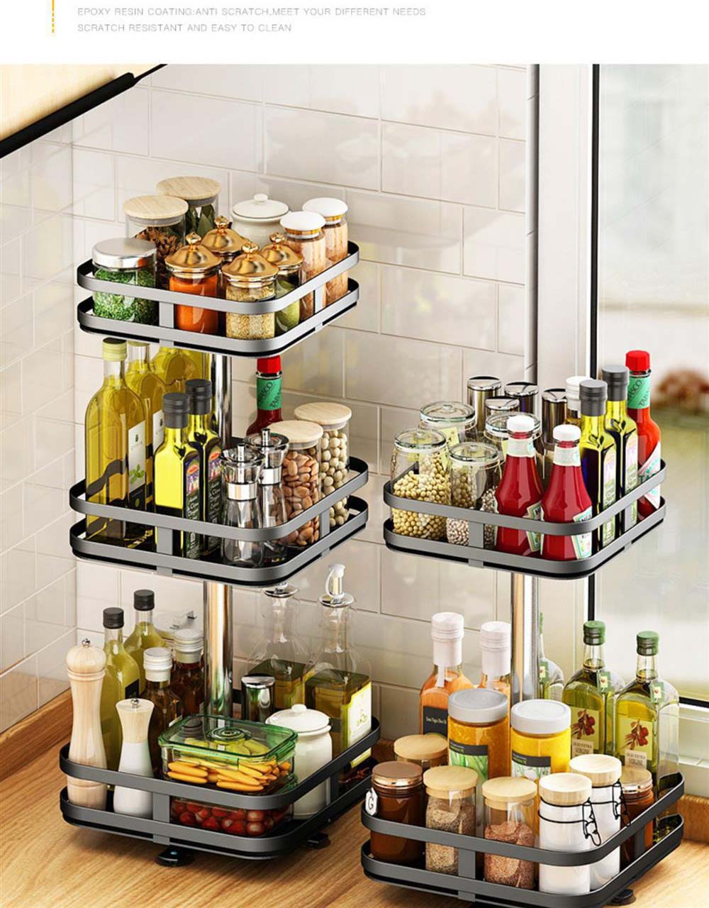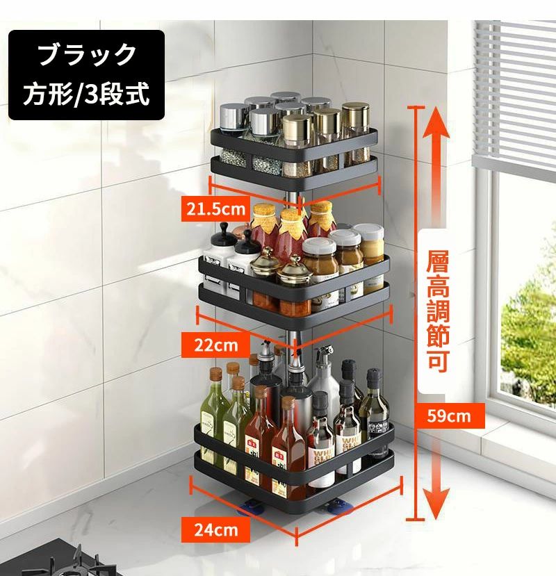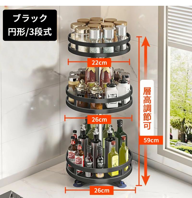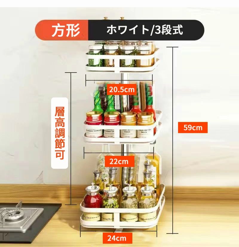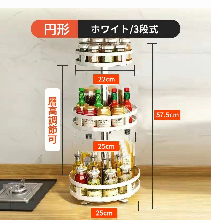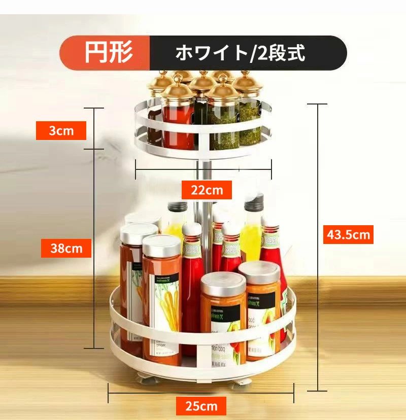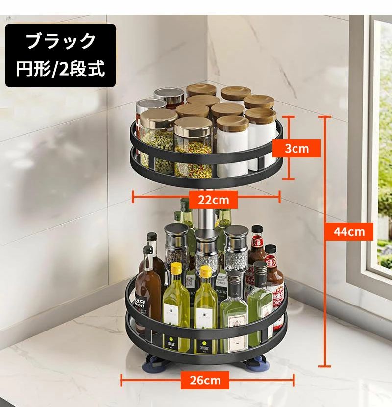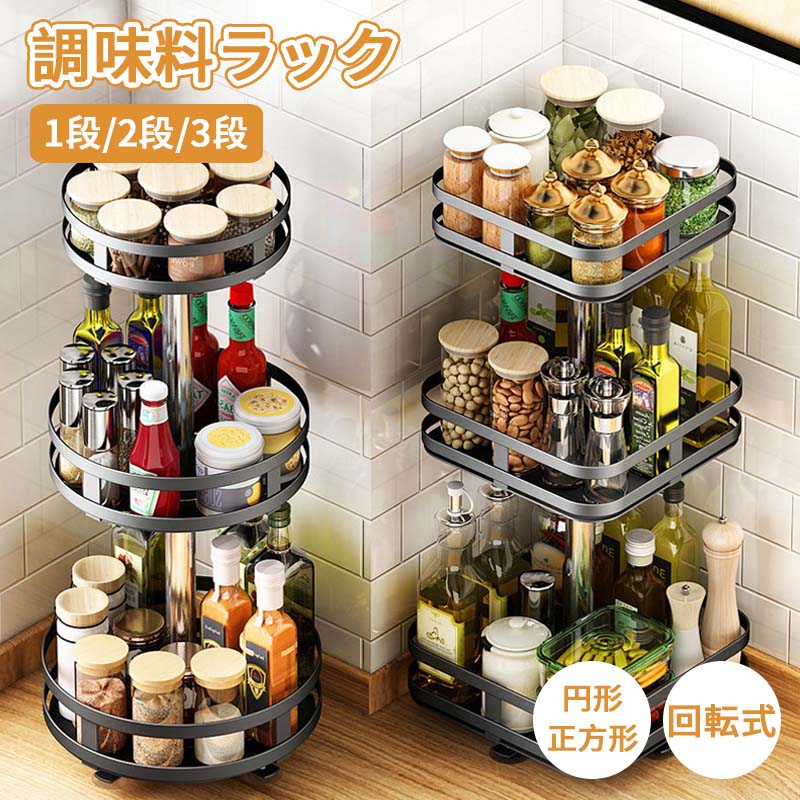 調味料ラック スパイスラック 1段 2 キッチン整理用品 整理ボックス 新作 ブラック ホワイト 円形/1段式 円形/2段式 円形/3段式 方形/1段式 方形/2段式 方形/3段式