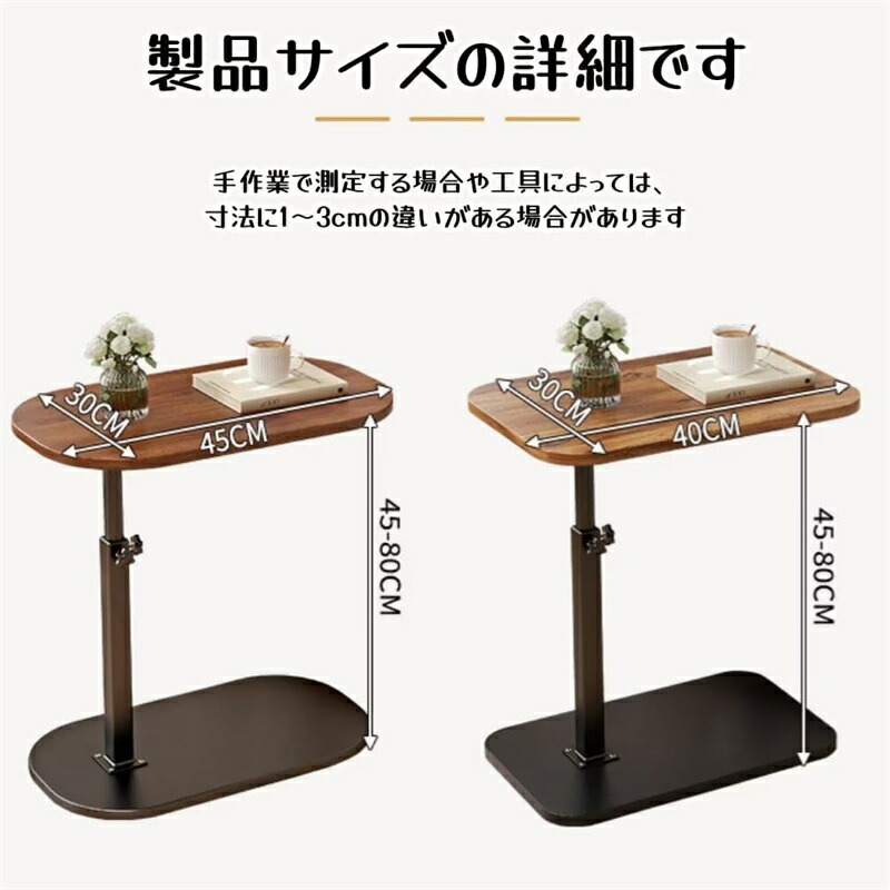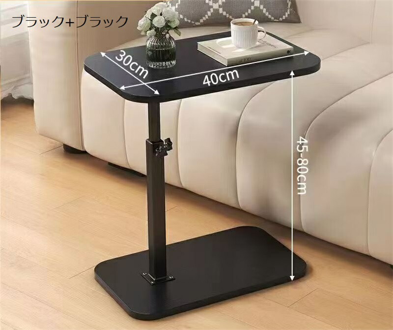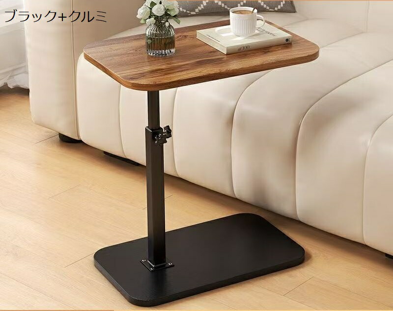 サイドテーブル 昇降式 ベッドサイドテ ブラック+クルミ ブラック+木目調 ブラック+ブラック ホワイト+木目調 ホワイト+ホワイト