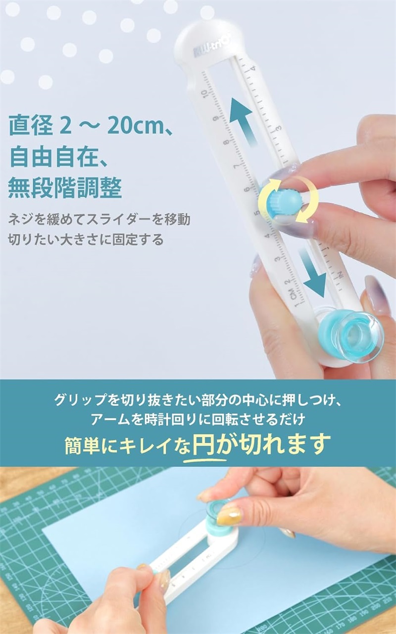 サークルカッター 穴があかない カッテ 日用品雑貨 文房具 手芸 通販 本体のみ 替え刃*2個(本体なし) 本体+替え刃*1個