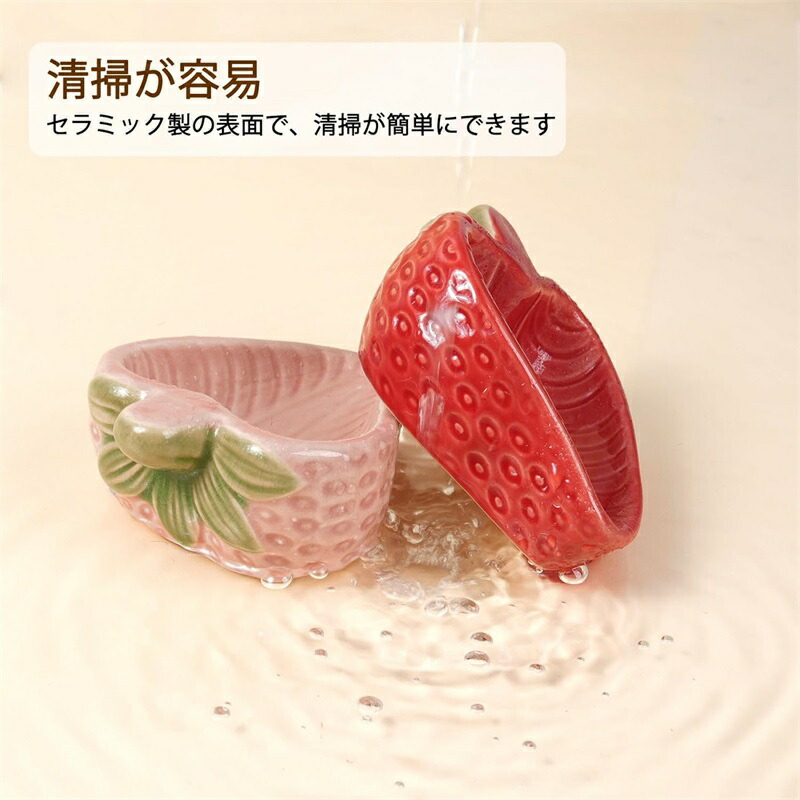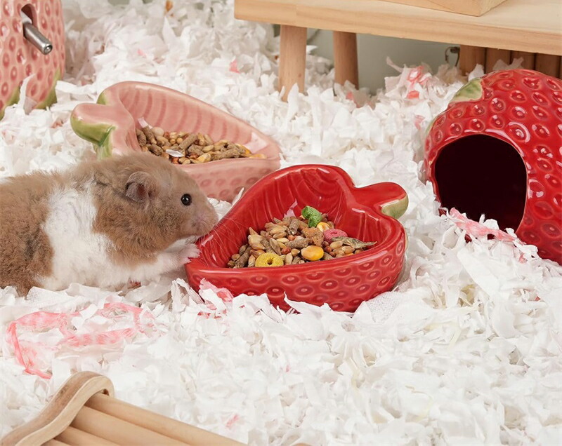 【可愛らしいピンクストロベリーデザイン】 私たちのハムスターえさ皿は、室内の雰囲気に溶け込みやすいピンク・レッドカラーを新たにラインナップしました。陶器製のハムスターえさ皿はその形がまるでストロベリー(イチゴ)のようで、ケージの中に楽しい観賞性をプラスします。この可愛らしいハムスターえさ皿が、あなたのハムスターに暖かみのある生活空間と遊びの場を作り上げます。