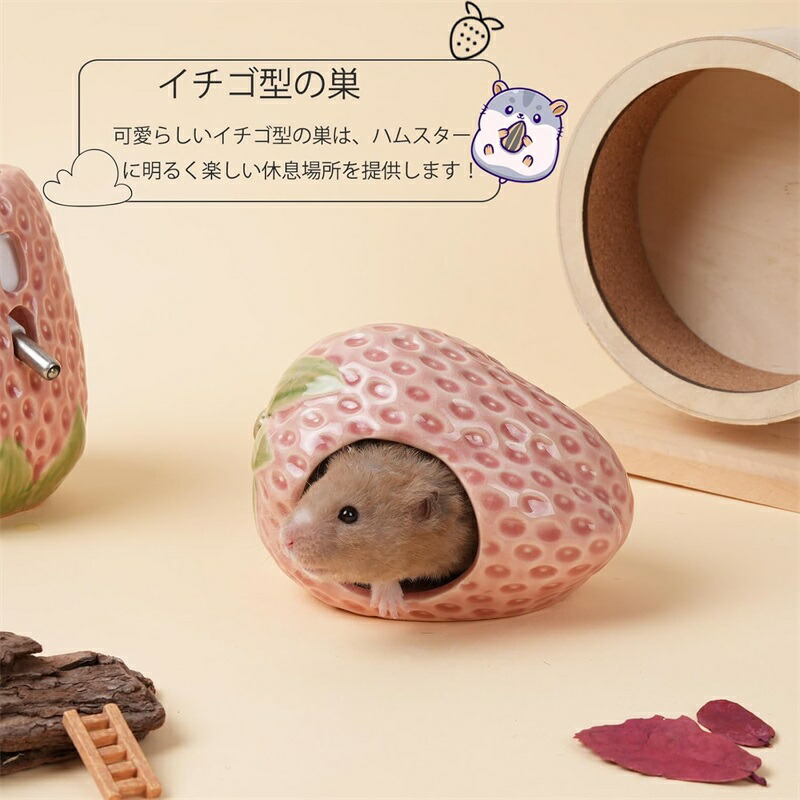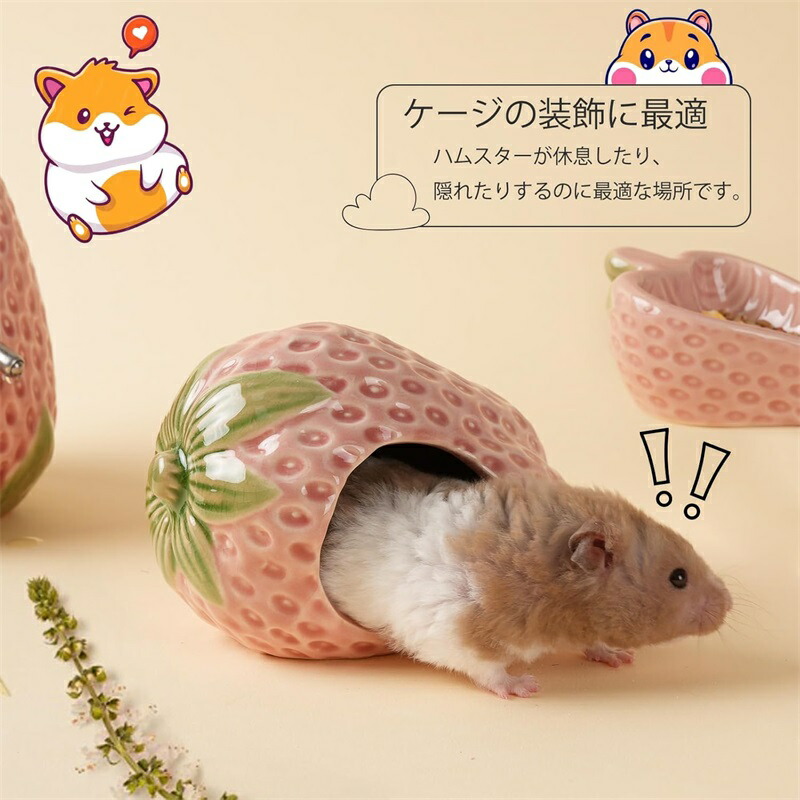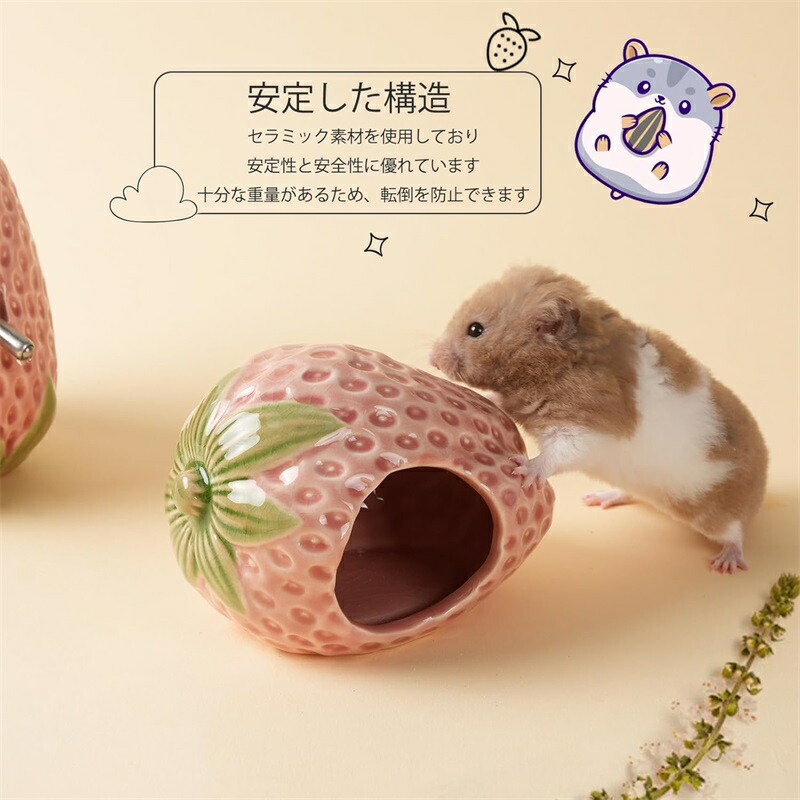 ハムスター ハウス 隠れ家 家 らしいイチゴ可愛造型 陶器製 飾りとしても使用可能 掃除が便利 快適でかわいい 洗える 夏用に最適 冷房環境でも使用可 暑さ対策に最適 涼感があり