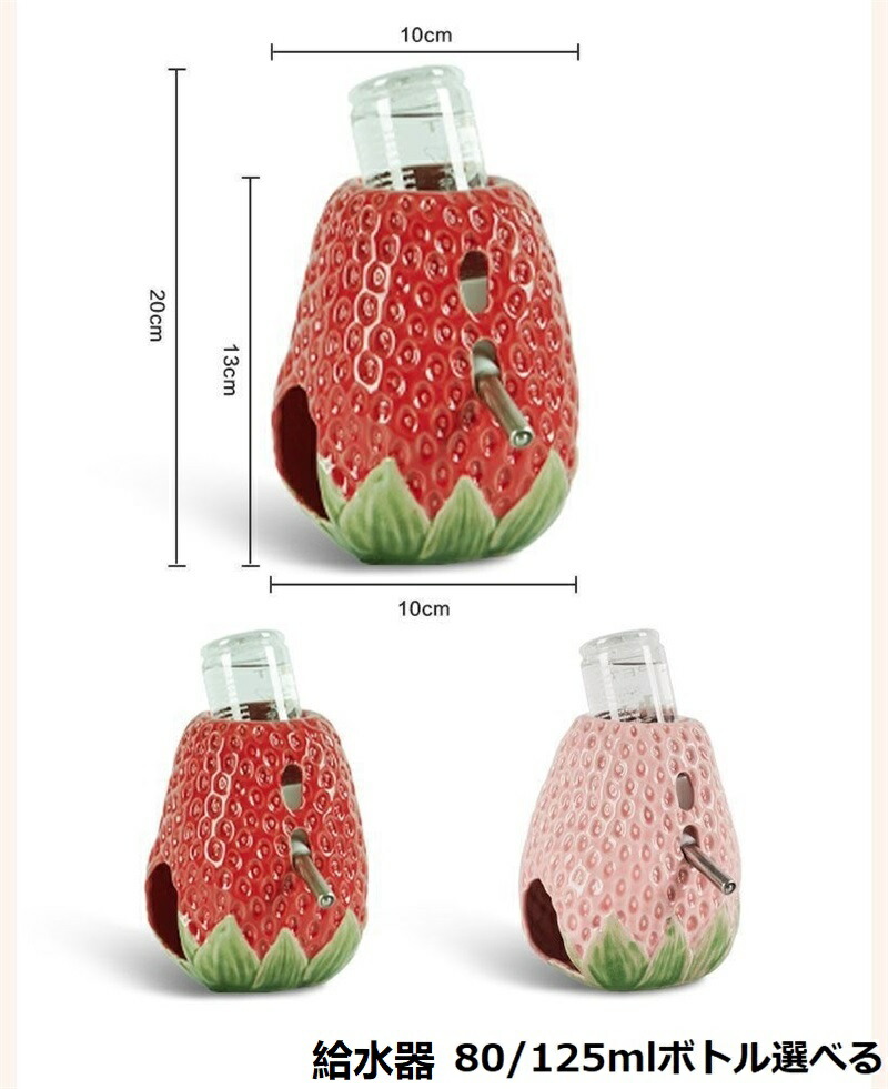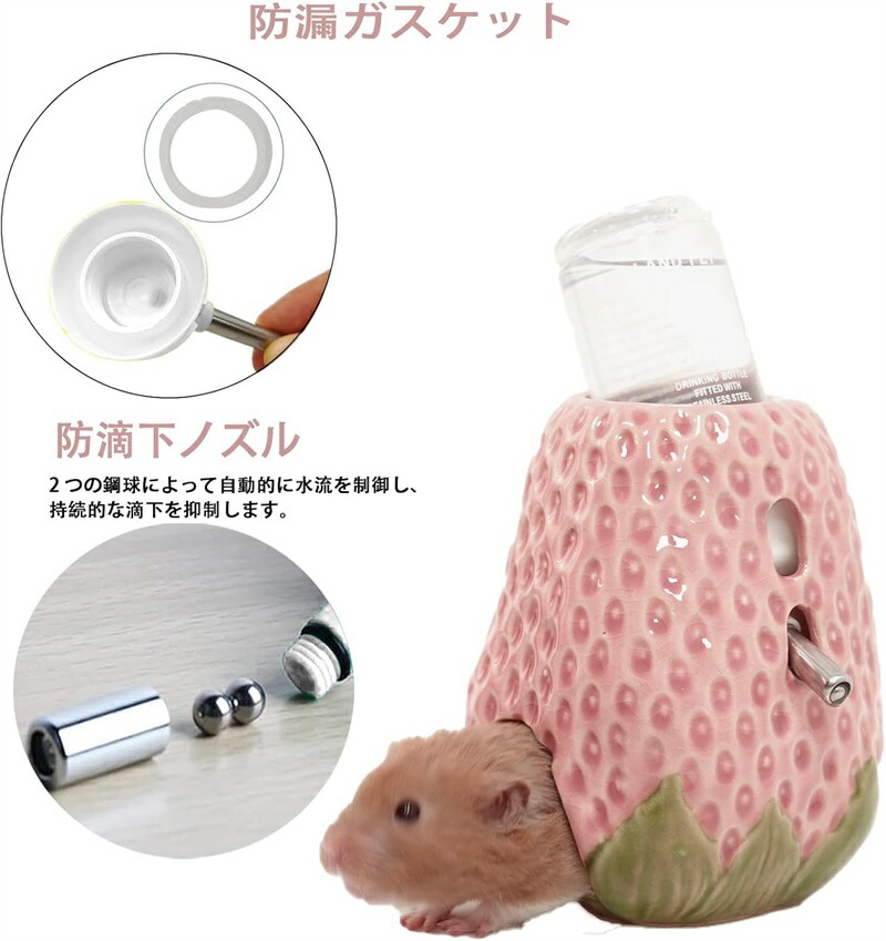 【可愛らしいイチゴ造型】 私たちのハムスター給水器は自然の要素を取り入れ、イチゴの造型にデザインされています。単調な給水器から脱却し、ケージに上品な装飾感を添えるだけでなく、ハムスターもきっと喜びます。