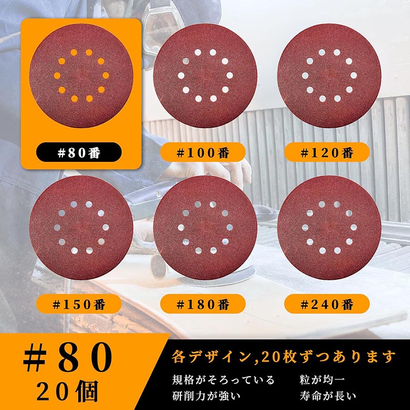 サンディングディスク 225mm径 1 #80 #100 #120 #150 #180 #240