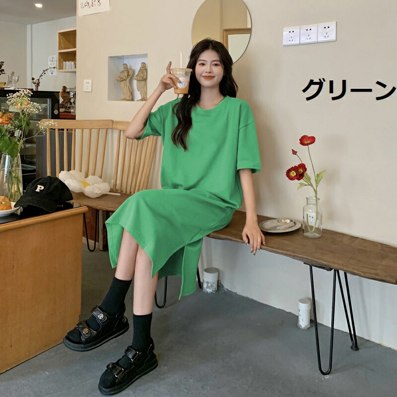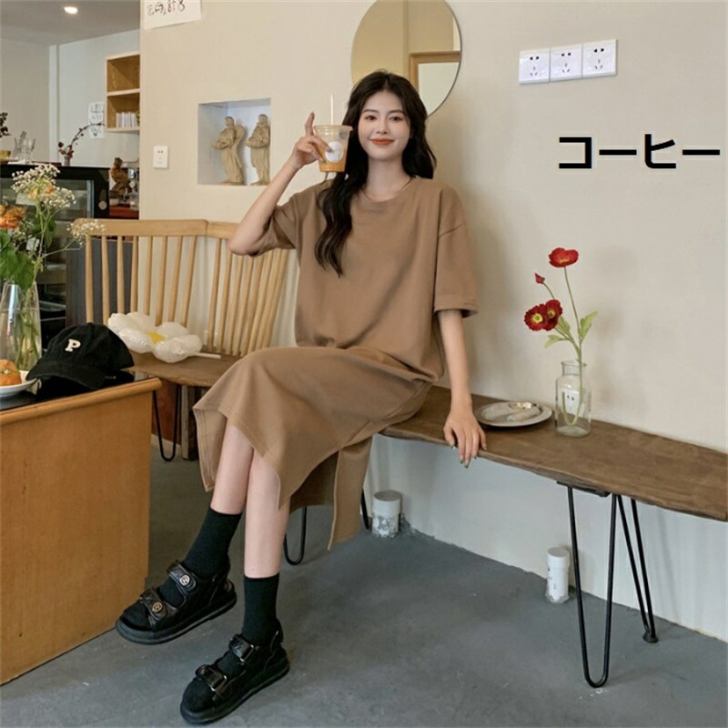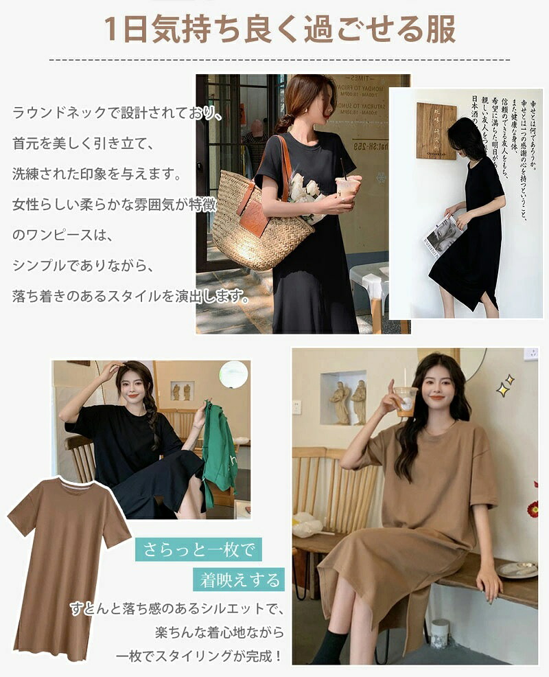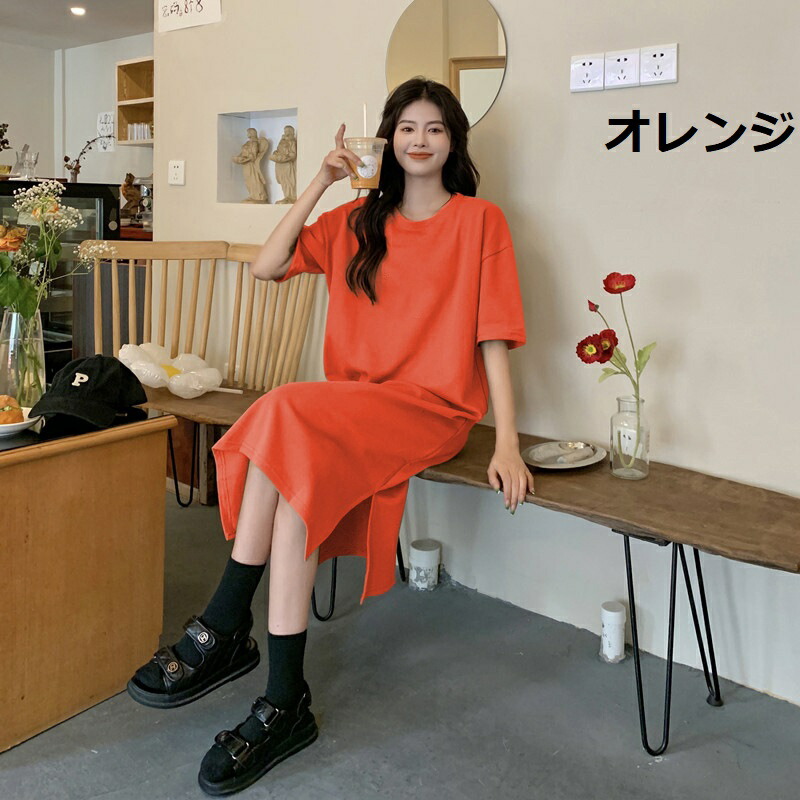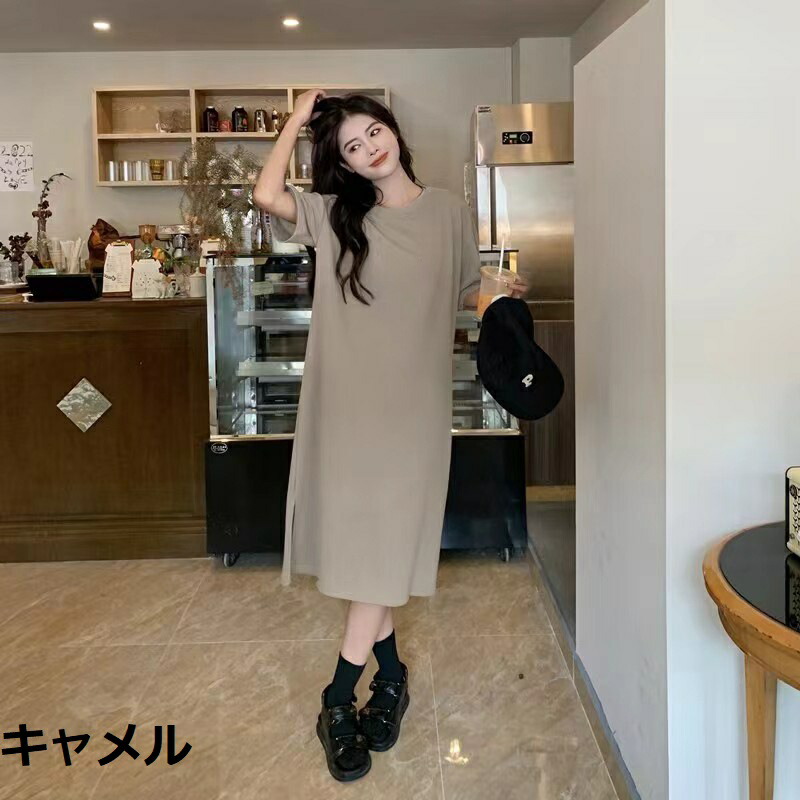 ワンピース レディース tシャツ 春夏 ワンピース 超目玉商品 ホワイト グレー オレンジ グリーン ダークグリーン ダークグレー コーヒー キャメル ブラック ネイビー M L XL 2XL 3XL 4XL