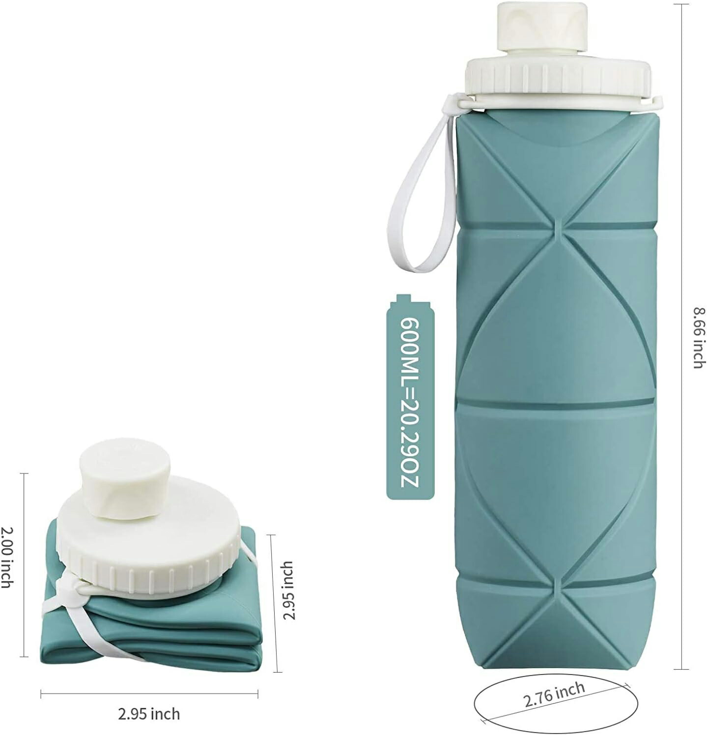 【折りたたみ式、コンパクト】ボトルは折りたたんで本体の1/5サイズまで圧縮することができます。付属の固定バンドがついているので、使わない時はコンパクトに折りたたんでバッグに収納することができます。軽量設計により80%のスペースを節約でき、持ち運びが簡単です。