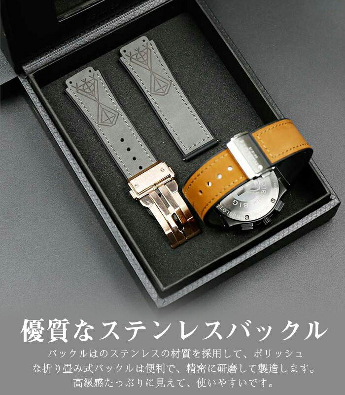 ウブロビッグバン 対応 腕時計バンド 腕時計用アクセサリー 腕時計用ベルト バンド 新作 ブラック ブラウン グレー グリーン カーキ ローズゴールド ゴールド シルバー ブラック