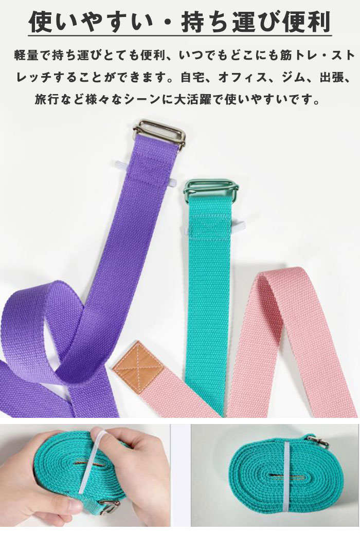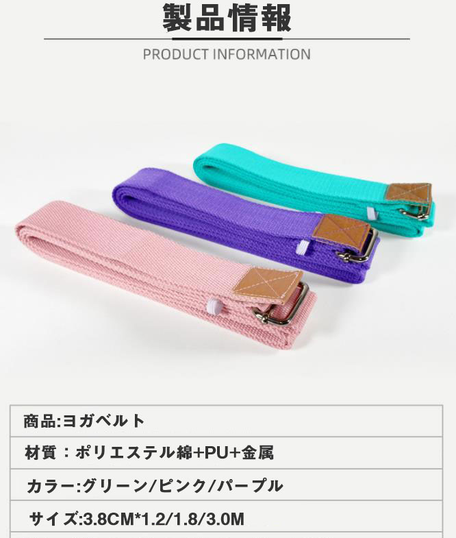 ヨガストラップ ベルト1.2M 1.5 グリーン ピンク パープル 1.2M 1.5M 3.0M