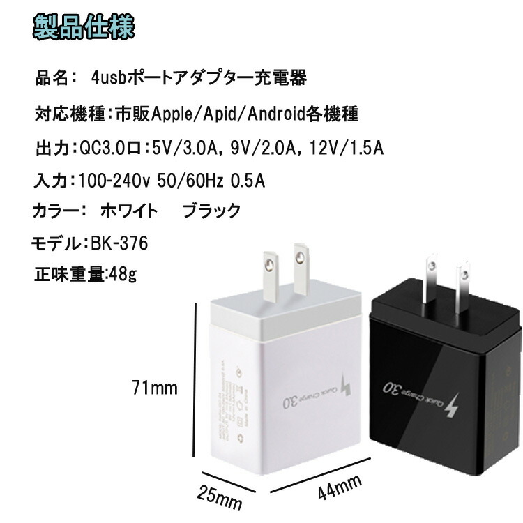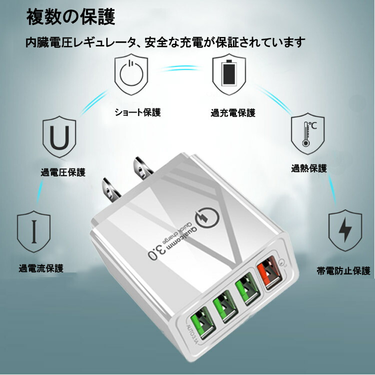 ACアダプター チャージャー USB4 スマートフォン タブレット 続々入荷中 ホワイト ブラック 1点 2点セット