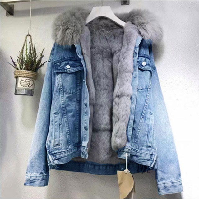 ファー付き コート レディース デニム コート ジャケット 早い者勝ち ブルー ブラック S M L XL 2XL
