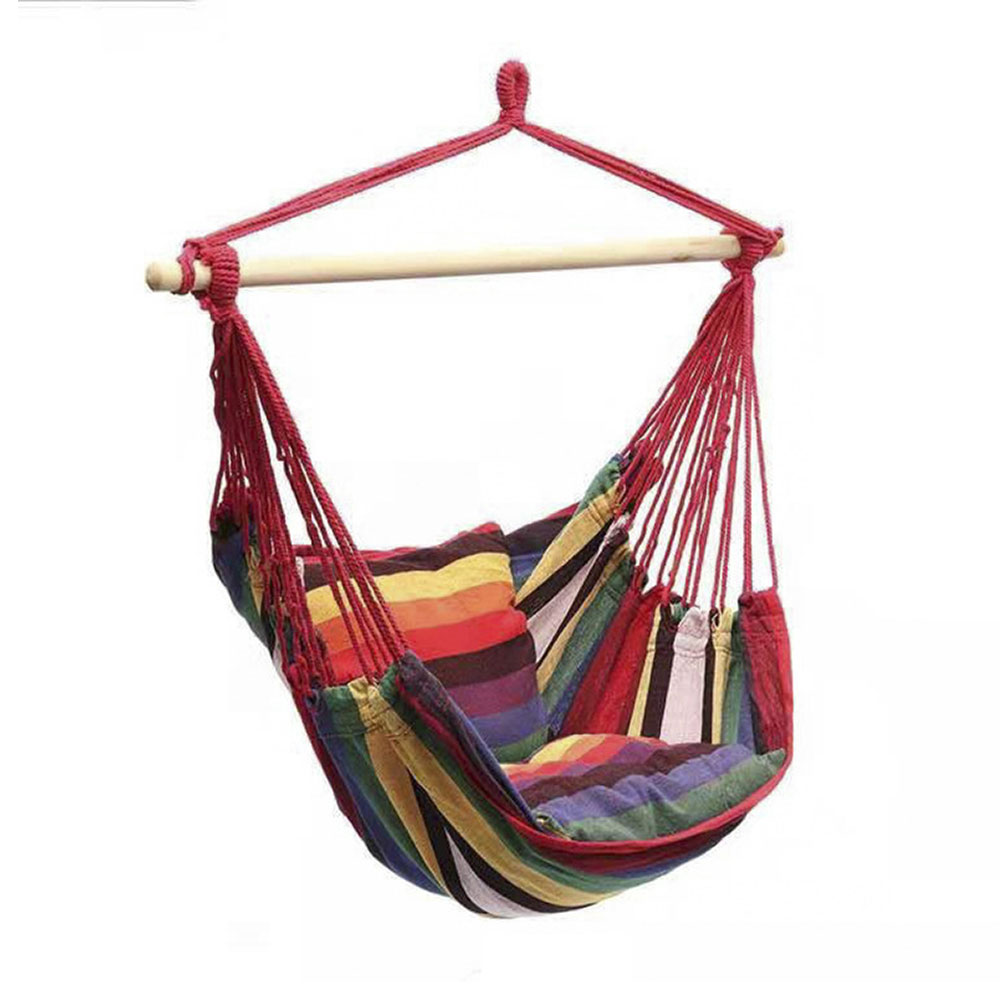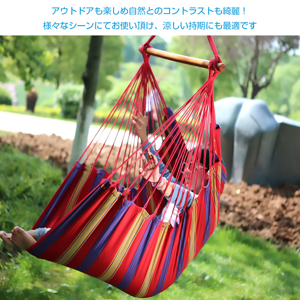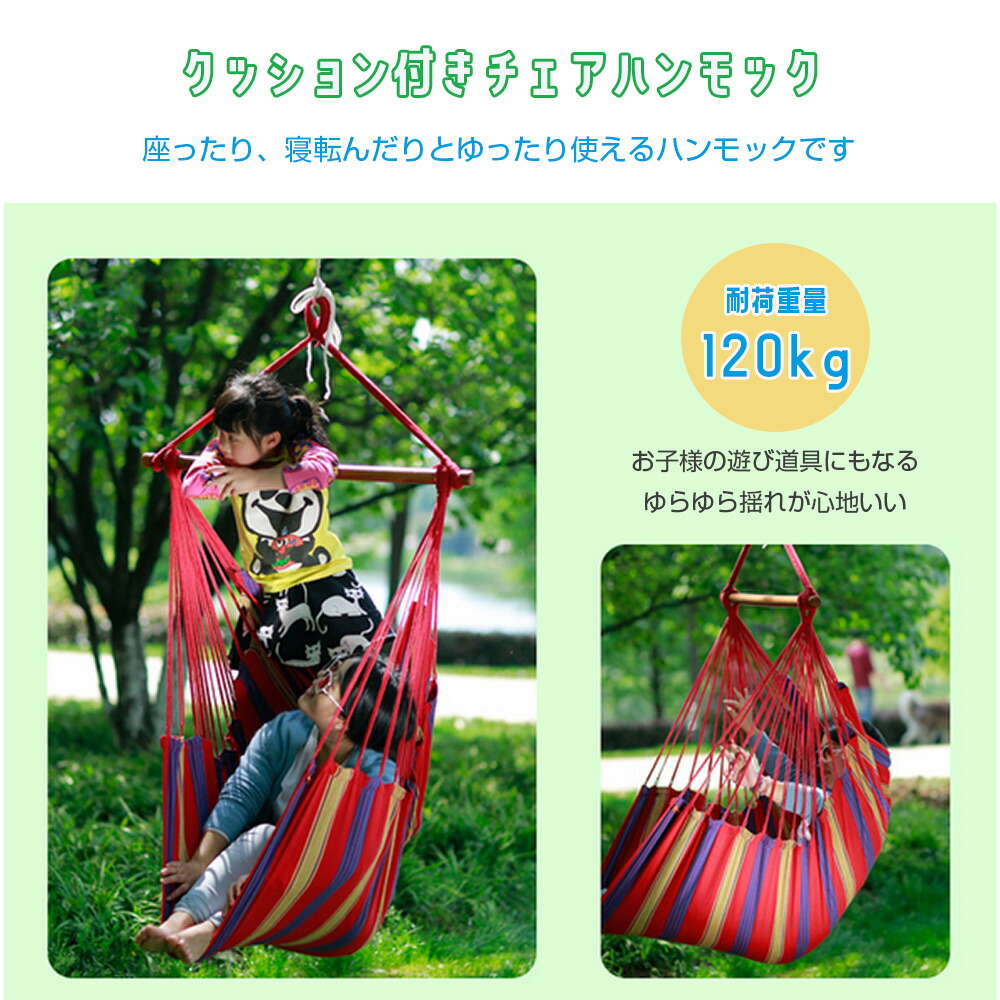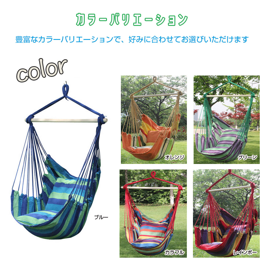 クッション付きチェアハンモック ロープ スポーツ アウトドア 続々登場 オレンジ グリーン レインボー カラフル ブルー