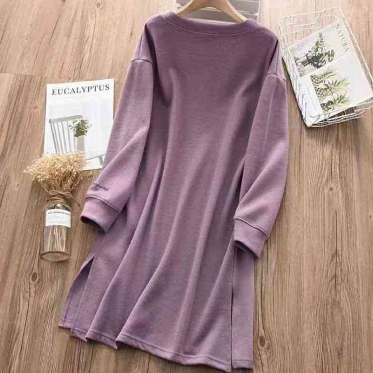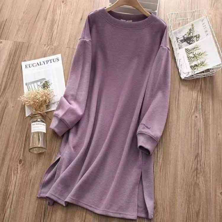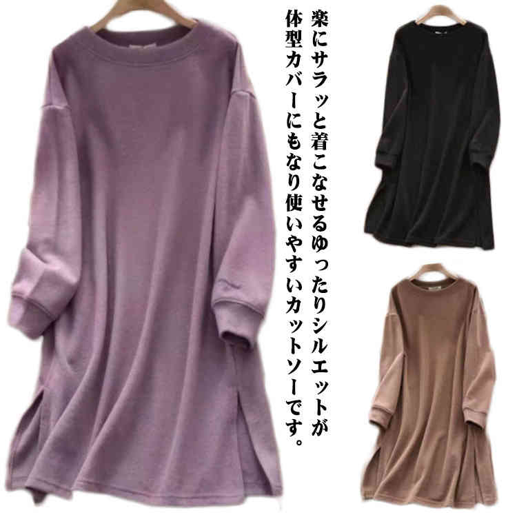 春秋冬 チュニック サイドスリット 長 チュニック 新作 パープル ブラック キャメル M L XL 2XL 3XL