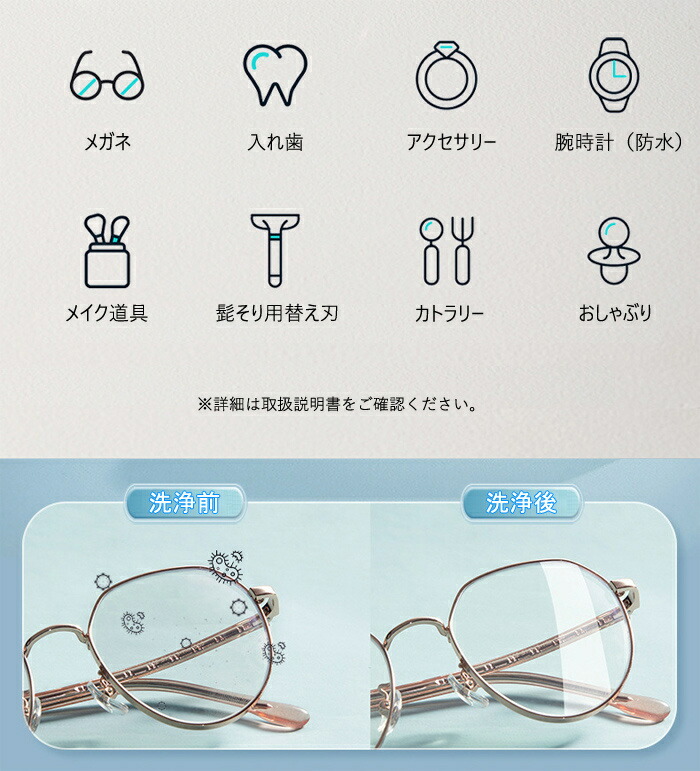 メガネ洗浄機 45000Hz 3分 簡単 超音波 洗浄器 超音波クリーナー 眼鏡洗浄 洗う メガネ 入れ歯 メガネ用 時計 小型 腕時計 めがね 指輪 貴金属 眼鏡