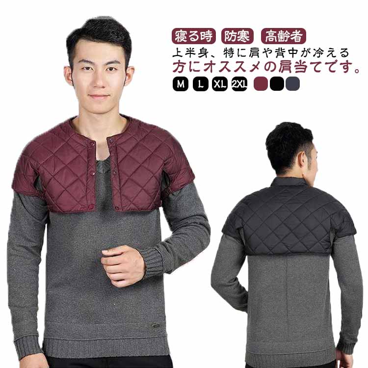 防寒具 肩当て メンズ ダウン 肩あて ブラック(丸首) ワインレッド(丸首) ネイビー(丸首) ブラック(襟付き) ワインレッド(襟付き) ネイビー(襟付き) M L XL 2XL