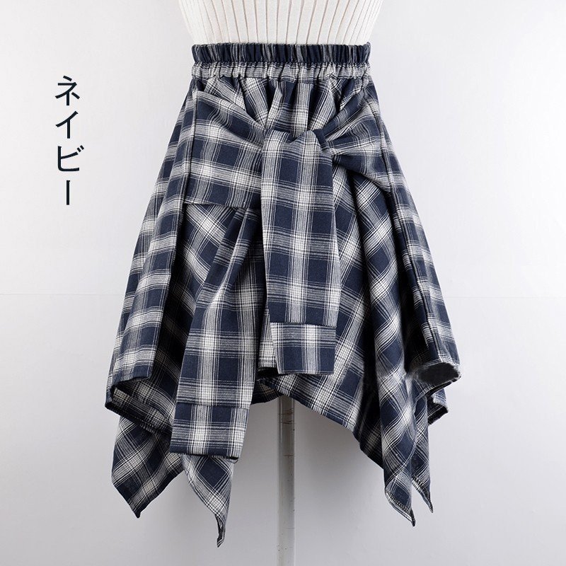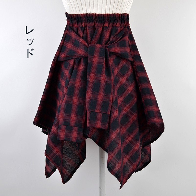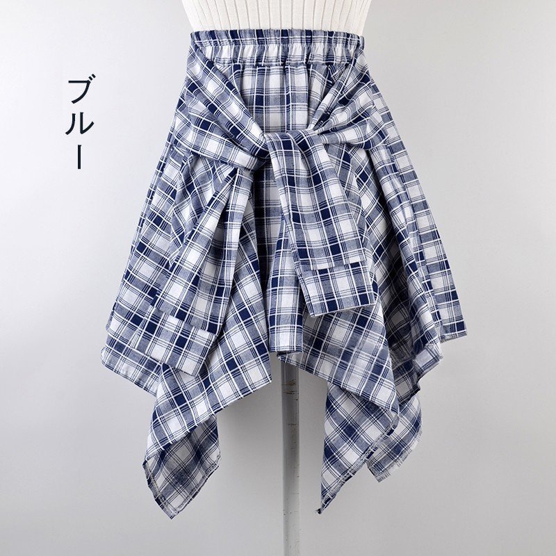 シャツ腰巻き風スカート チェック柄 レ レディースファッション 通販 ブルー ブラック ネイビー レッド レッド+ネイビー